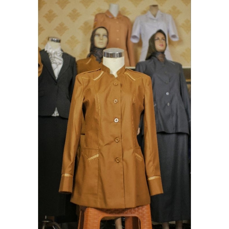 [01] A&Y Blazer Baju Seragam Pemda PDH Guru / PNS Wanita Warna Khaki Tua & Khaki Muda BAHAN TOYOBO PREMIUM | Seragam Kerja Dinas PDH pemda tua Wanita terbaru