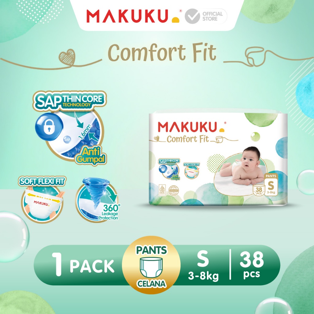 [1 PACK] MAKUKU SAP Diapers Comfort Fit Pants/Tape NB/S/M/L/Xl/XXL Popok Bayi Tipis Extra Dry Anti Gumpal Mengunci Cairan Cepat Kering Type Celana/Perekat