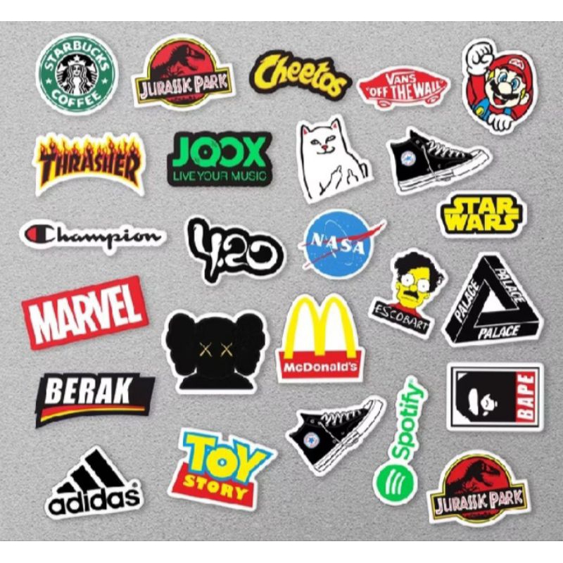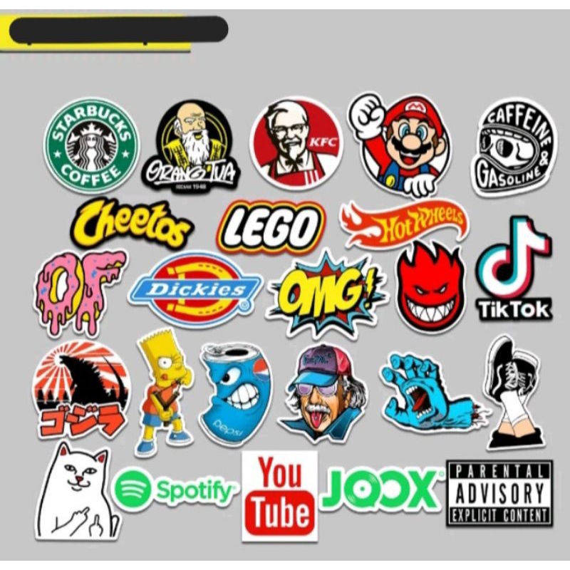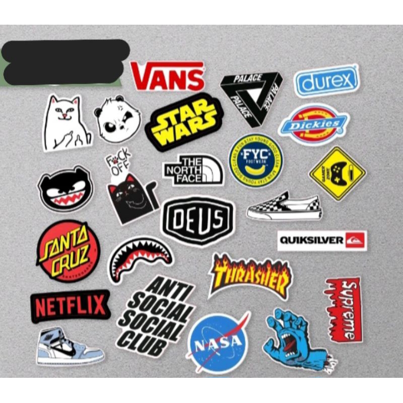 [ 1 Pack = 8 15 & 25 pcs ] Stiker brand distro hitam putih warna warni logo aesthetic skateboard band tumbler gitar motor botol lemari