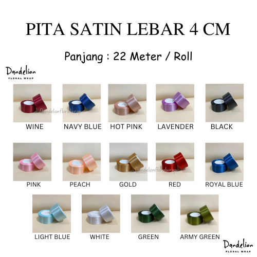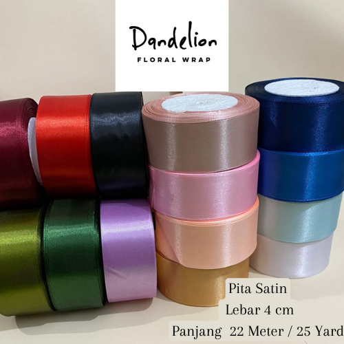 [1 ROLL] PITA SATIN LEBAR 4 CM ROLL 25 YARD / 22 METER PITA KADO GIFT BOUQUET BUNGA DEKORASI