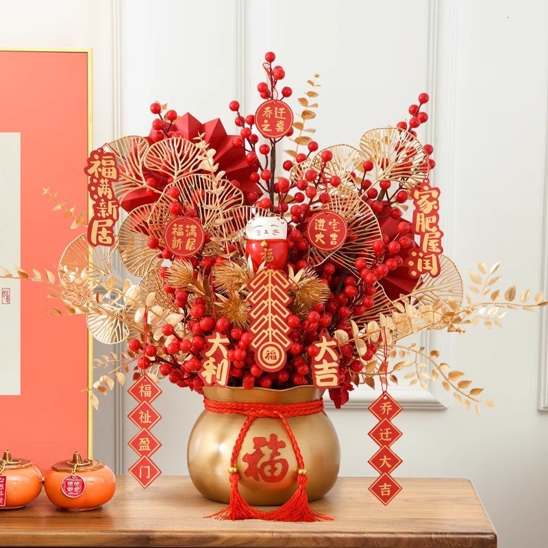 [1 SET] Hiasan Pot Bunga Imlek Set Cherry Blossom Vas Keramik Vase Decoration Hampers Gift Aksesoris Dekorasi Pajangan Meja Ruang Tamu Chinese New Year Tahun Baru Sincia Money Pouch