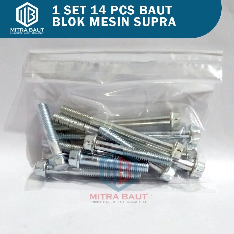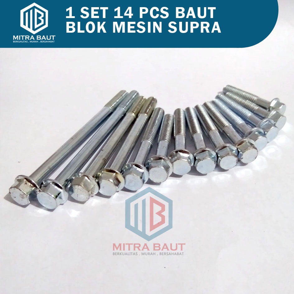 [ 1 Set 14 Baut ] Baut Blok Mesin Honda / Baut-Baud Block-Blok Mesin-Crankcase Kiri-Kanan Supra