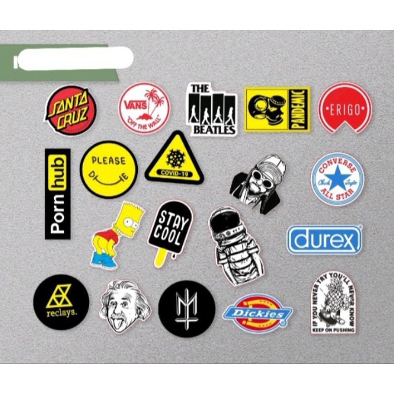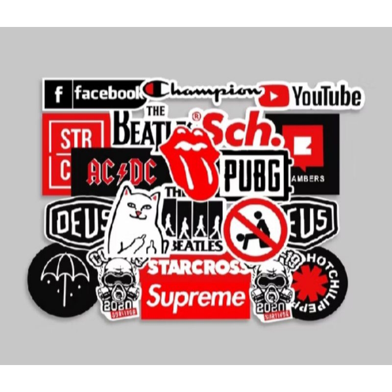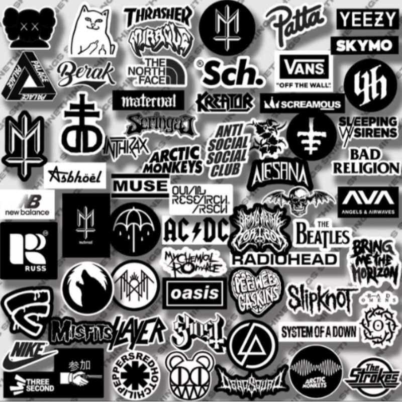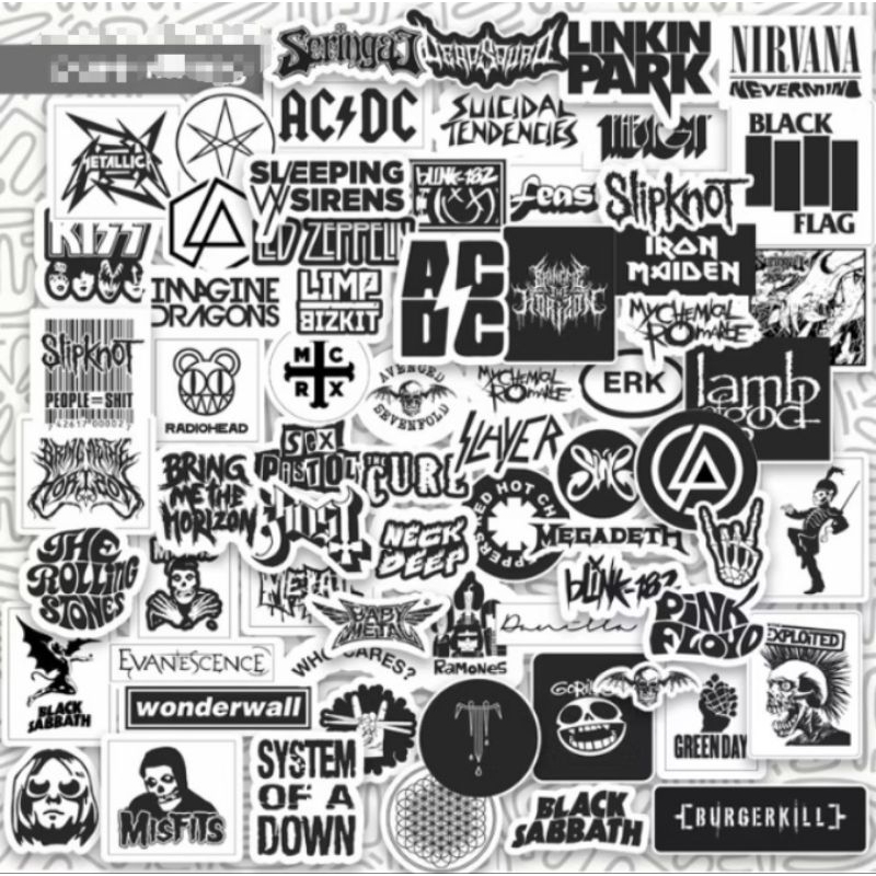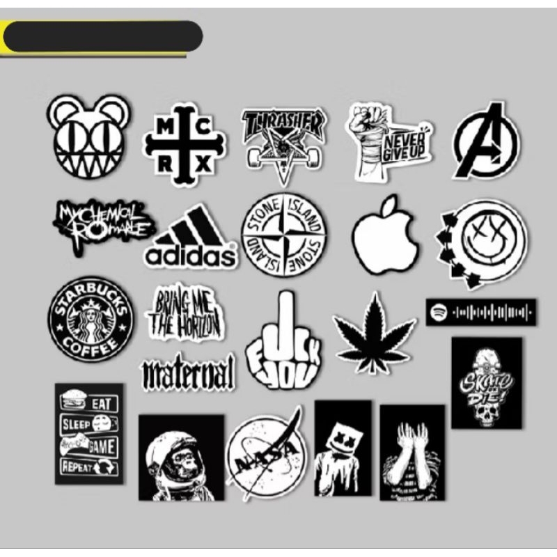 [ 1 pack = 15 lembar ] Stiker warna hitam putih music skateboard warna dinding motor botol distro band musik gitar lemari helm distro aesthetic