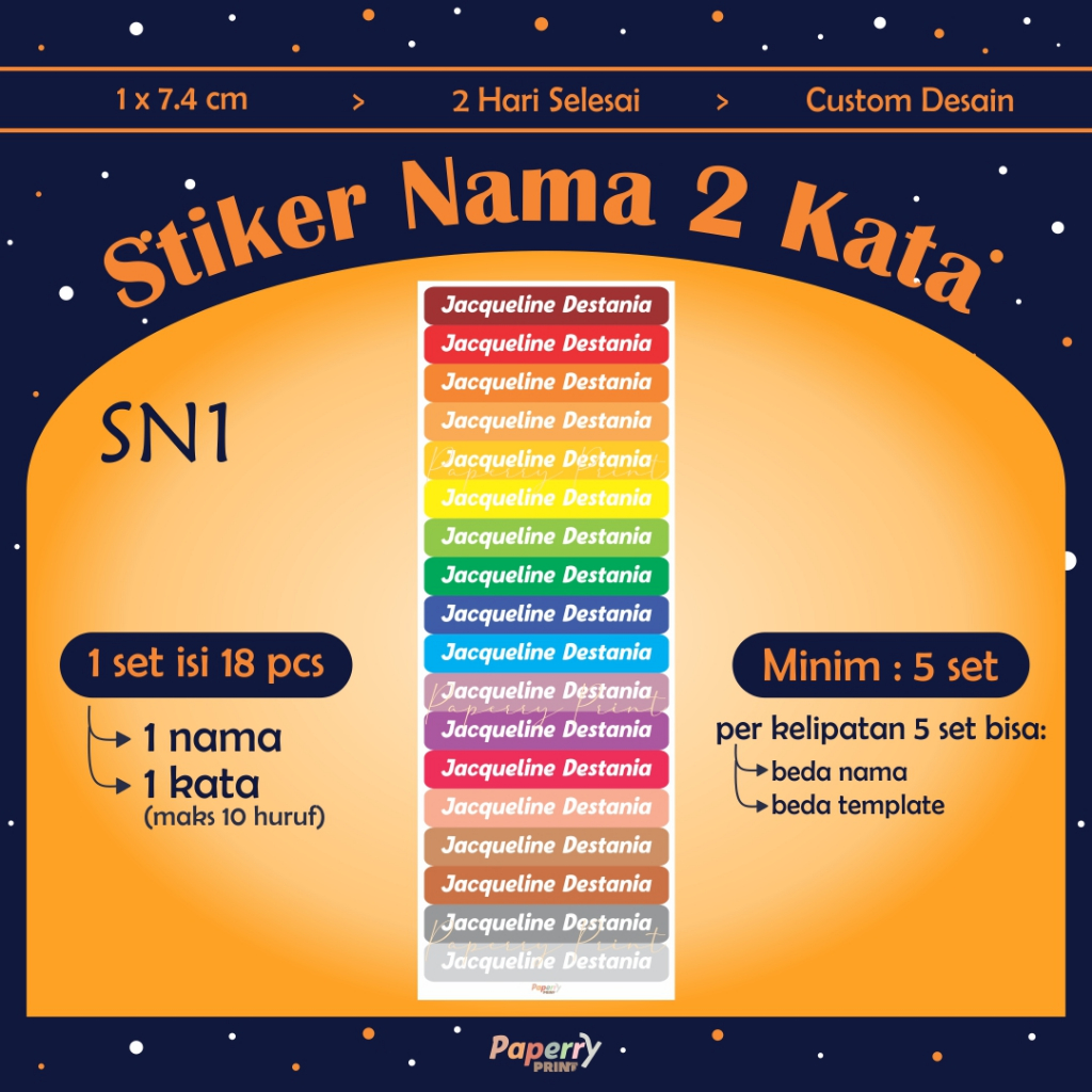 [1 x 7.4 cm] Stiker Nama / Stiker Label Nama / Stiker Label Nama Anak / Stiker Label Nama Custom / Stiker Alat Tulis / Stiker Pensil / Stiker Spidol / Label Alat Tulis / Label Pensil / Label Spidol