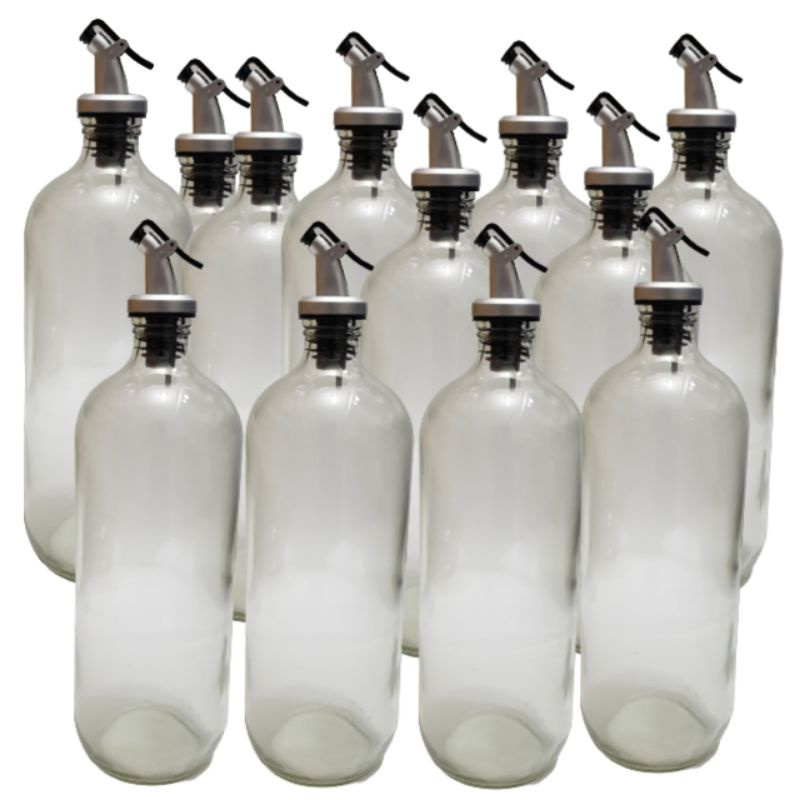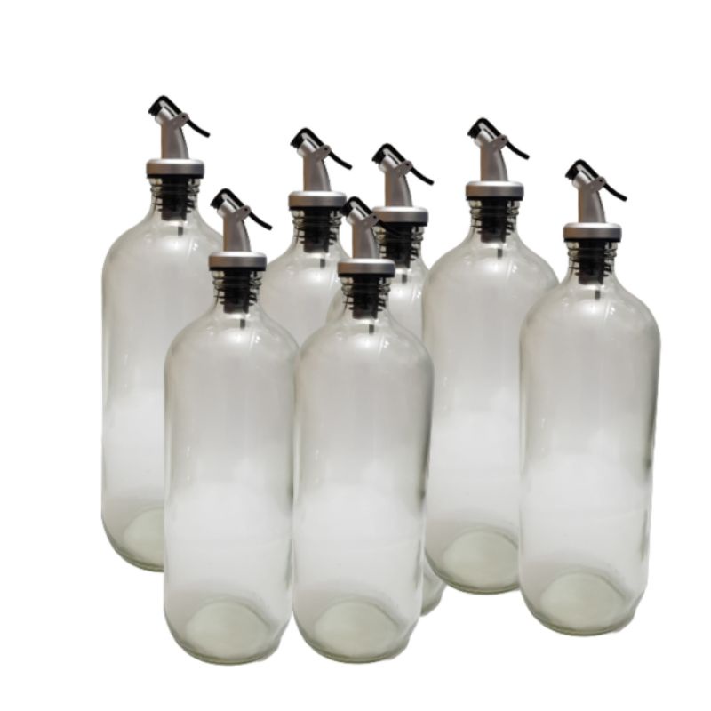 / 10 ( SEPULUH ) PCS Botol Kaca 1 liter Tutup Flip Pourer Silver / Botol Bolles / Botol Madu / Botol kecap / Botol Dapur / Botol Jamu kaca 1 liter1