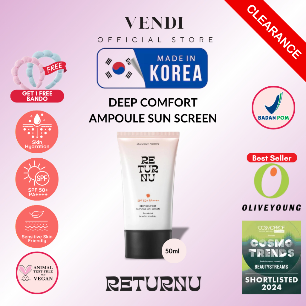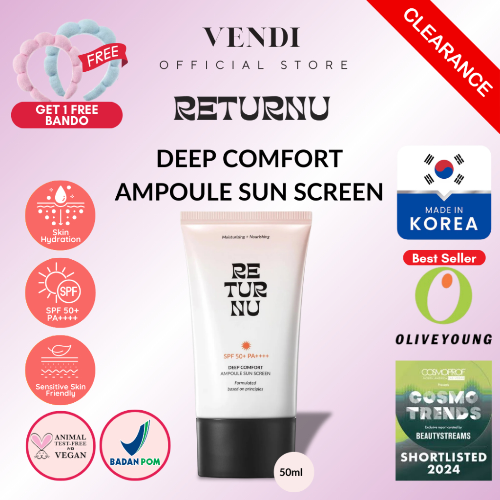 RETURNU Sunscreen Korean SPF50 PA+++ Korean Skincare | UV Protection Brightening | Sunscreen Wajah Ringan Tidak Lengket