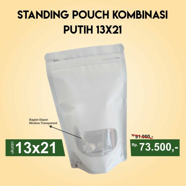 [100 PCS]standing pouch window hitam putih kpack 13x21