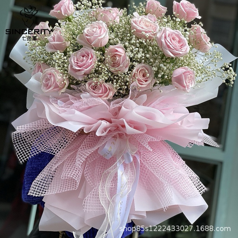 [10040] Kertas Tile Jaring Buket Bunga motif Persegi Kecil | Square Net Flower Wrapping Mesh Korean, Jaring Persegi Polynet Bunga, Jaring Jala Persegi