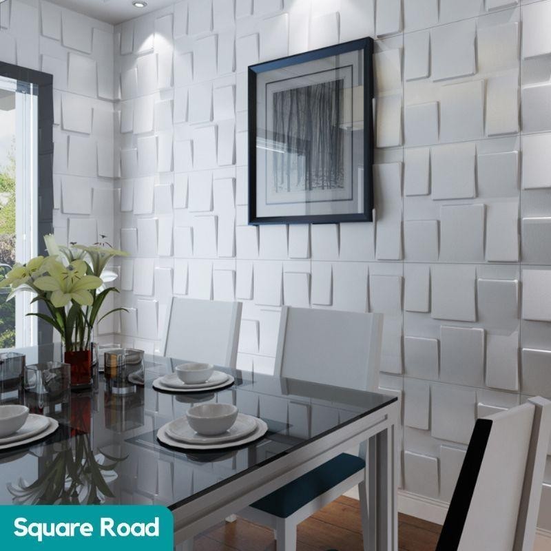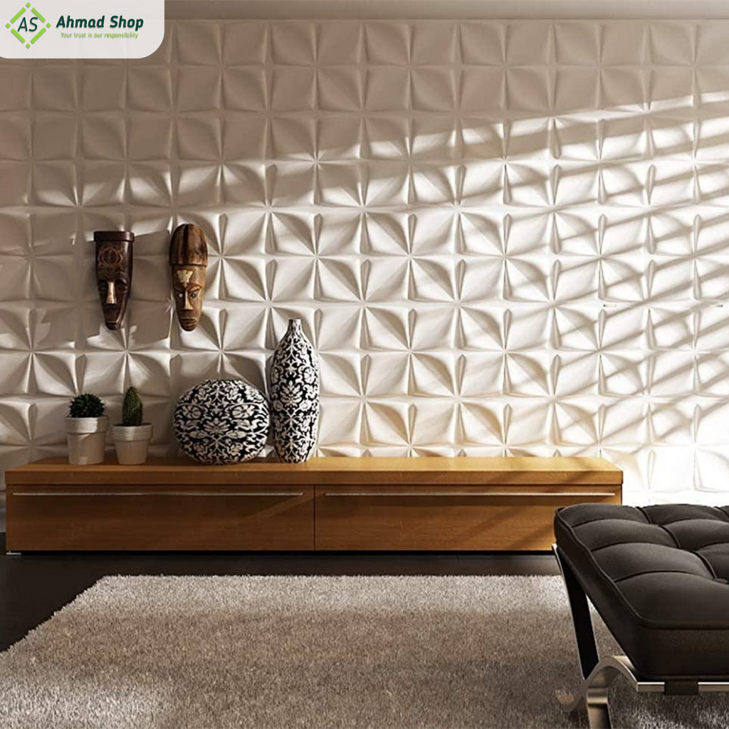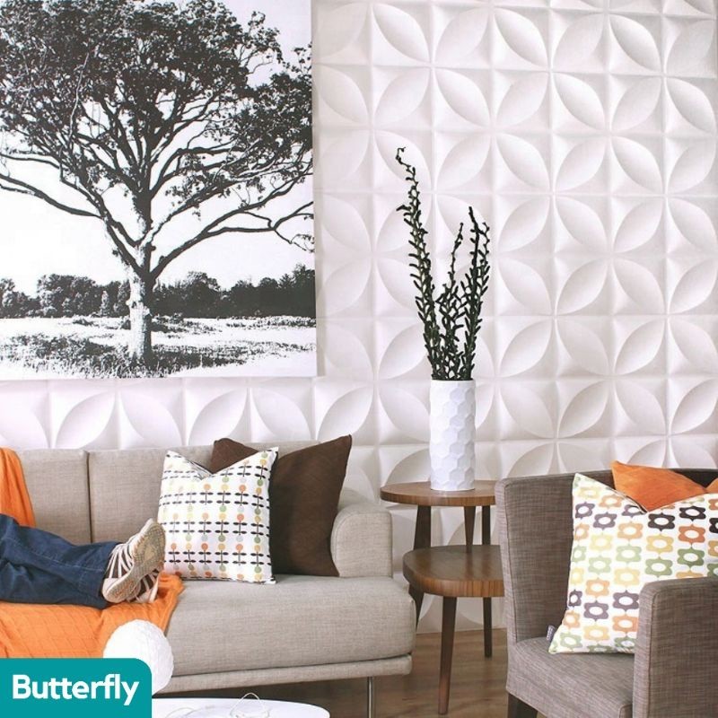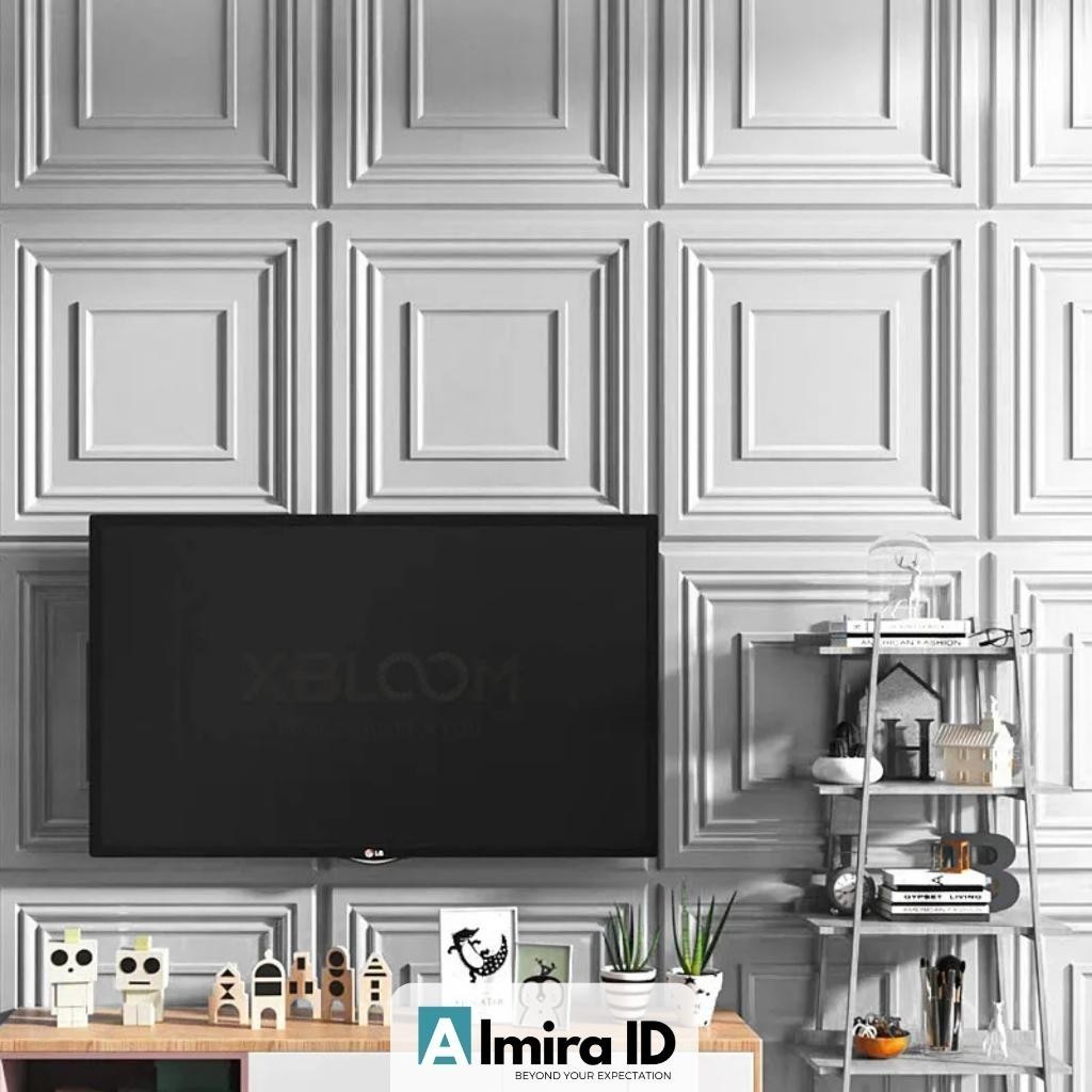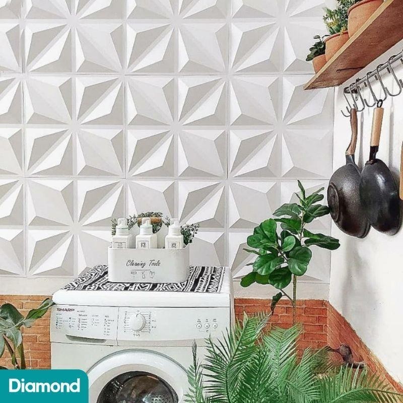 [12 Motif] 3D Wallpanel Dinding PVC 50x50 cm Solid Wallpaper Dinding Dekorasi Premium Wall Panel Estetik Klinik Cafe Kantor Tridee Royal Menka Quad Diamond Gold Flowing Wave Circle Square Road Pyramid Piramida Soft Butterfly Overlap Flower X by Almira ID