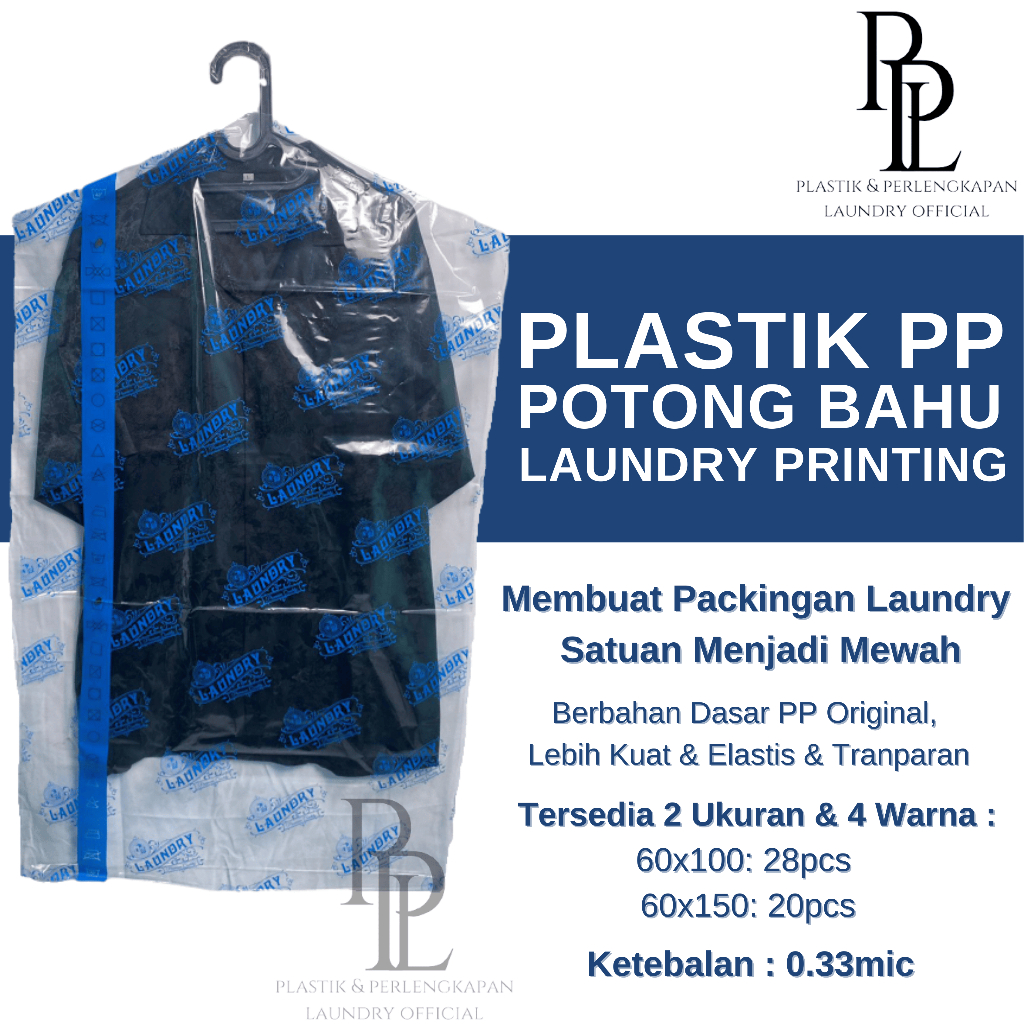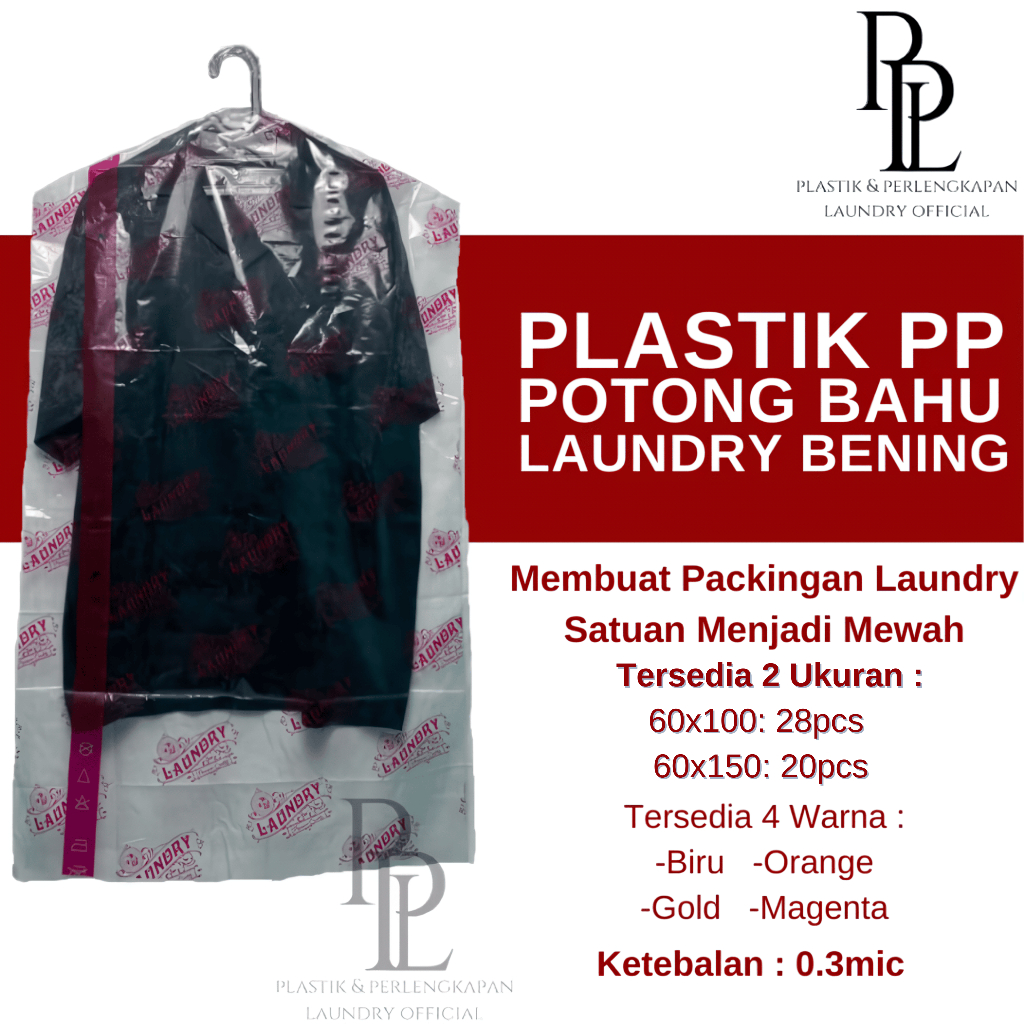 [1KG] Plastik Laundry Satuan Gantung Baju Sablon / Plastik Laundry PP Cutting Bahu Sablon/ Print / Plastik Hanger Laundry Satuan Kiloan 60 x 100/150