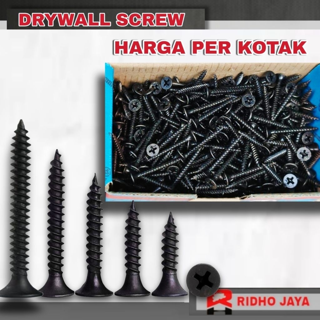 [1Kotak 1000gr] Sekrup Gypsum Baja - Baut Skrup Kayu Drywall Screw Hitam