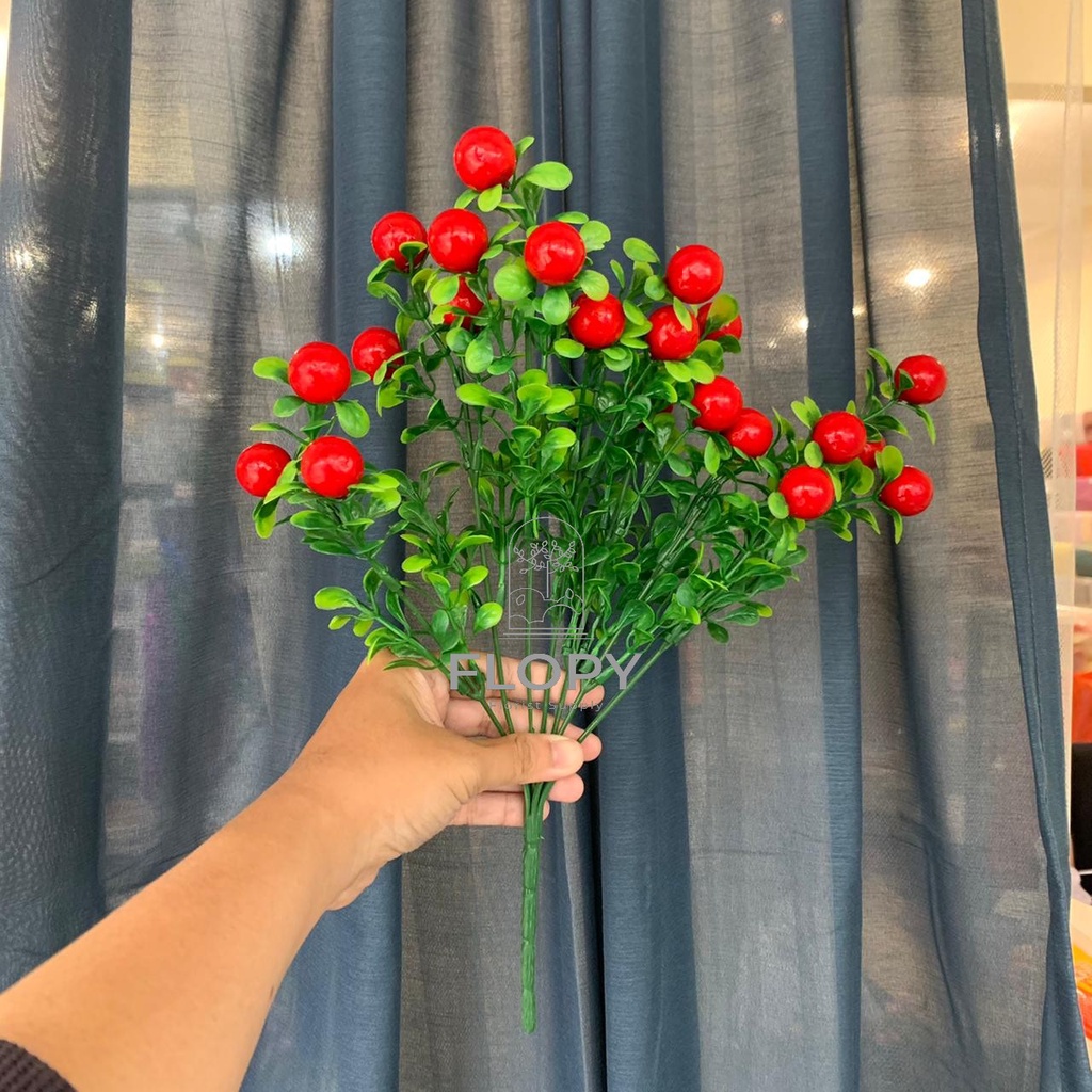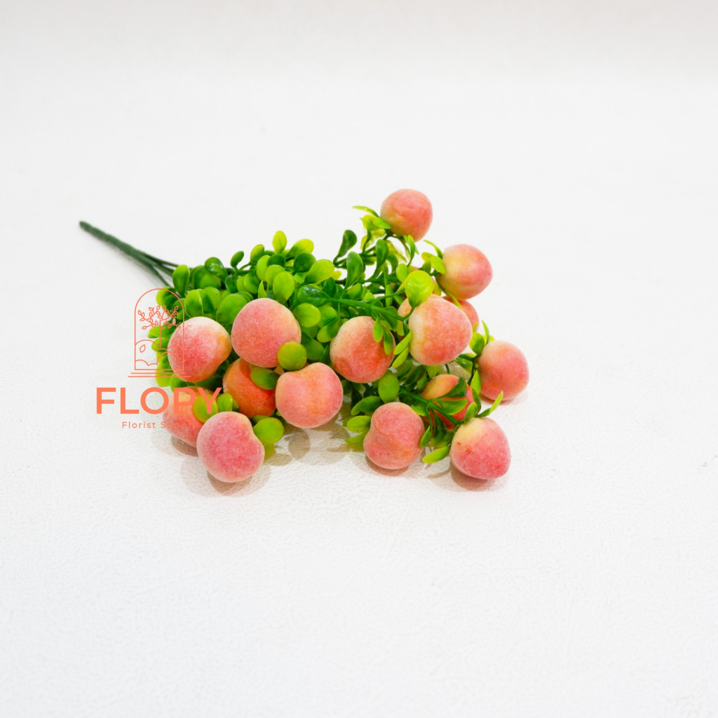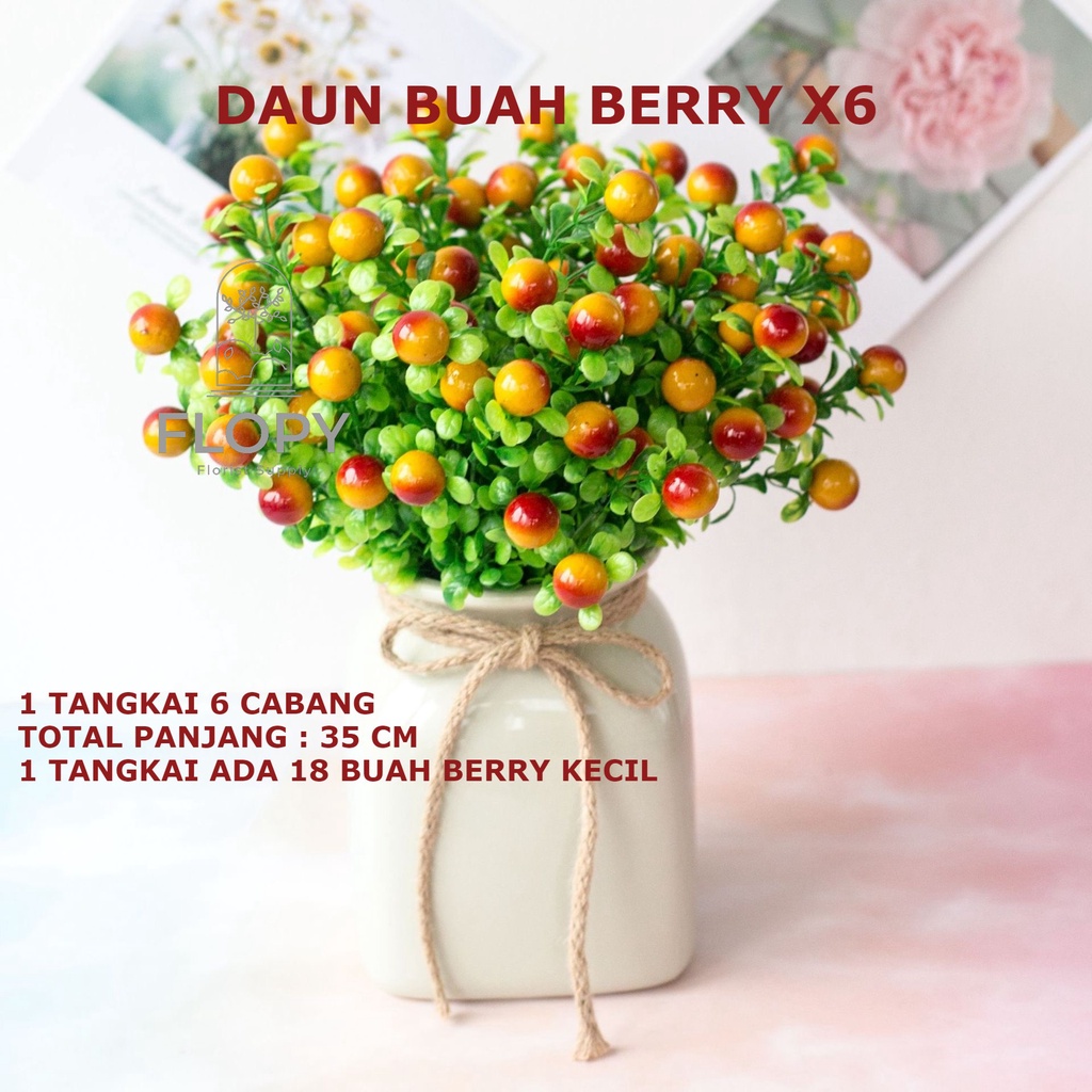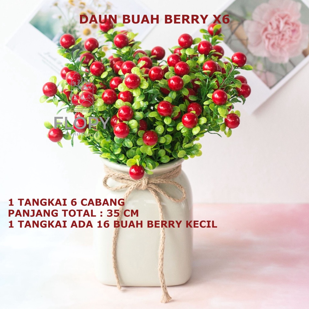 [1Tangkai 6 Cabang ] Daun Buah Berry X6 / Daun Buah Strawberry / Daun Buah Peach / Daun Artificial / Daun Dekorasi Palsu (1 kg isi 25 pcs)