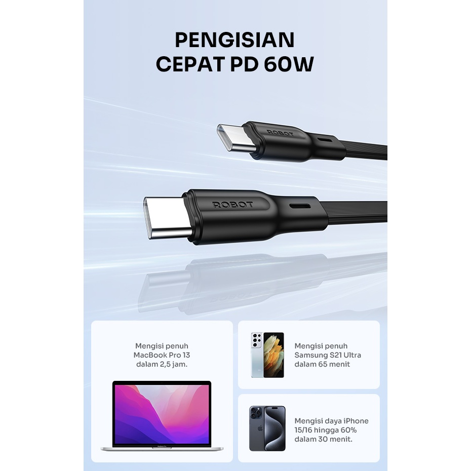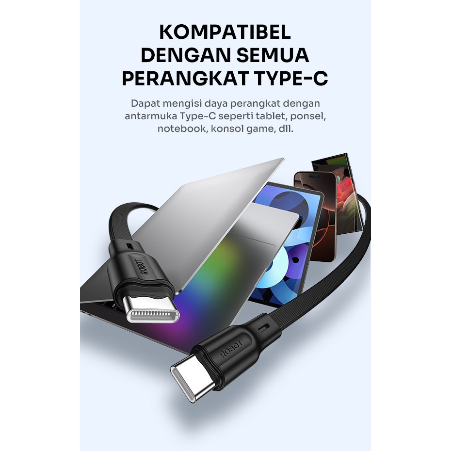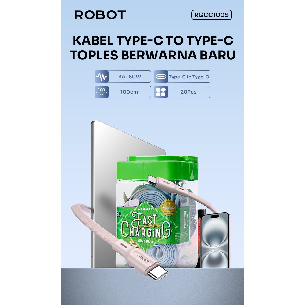 [1pcs] Robot RGCC100S Kabel Data Type-C to Type-C 3A 60W Support Fast Charging PD/Power Delivery