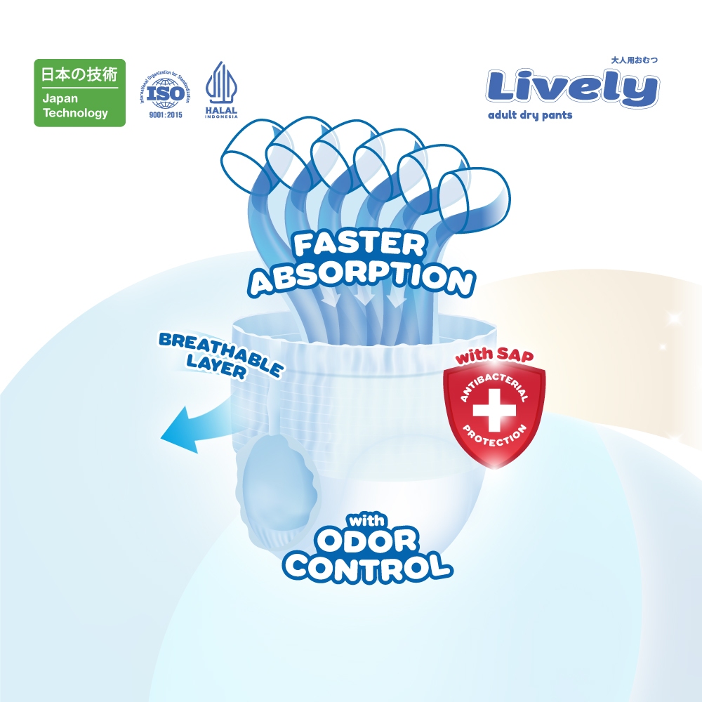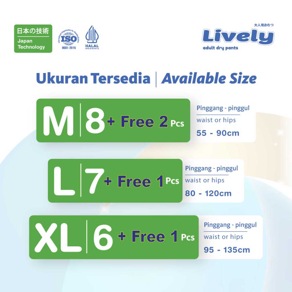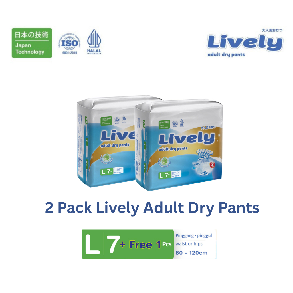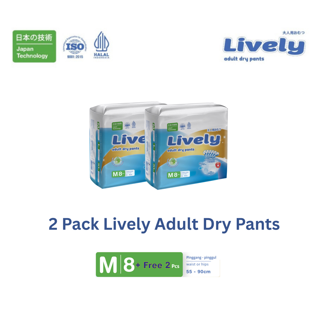 [2 Pack] Lively Adult Dry Pants M8+2 L7+1 XL6+1 Anti Bocor Anti Ruam Odor Control Nyaman Dipakai