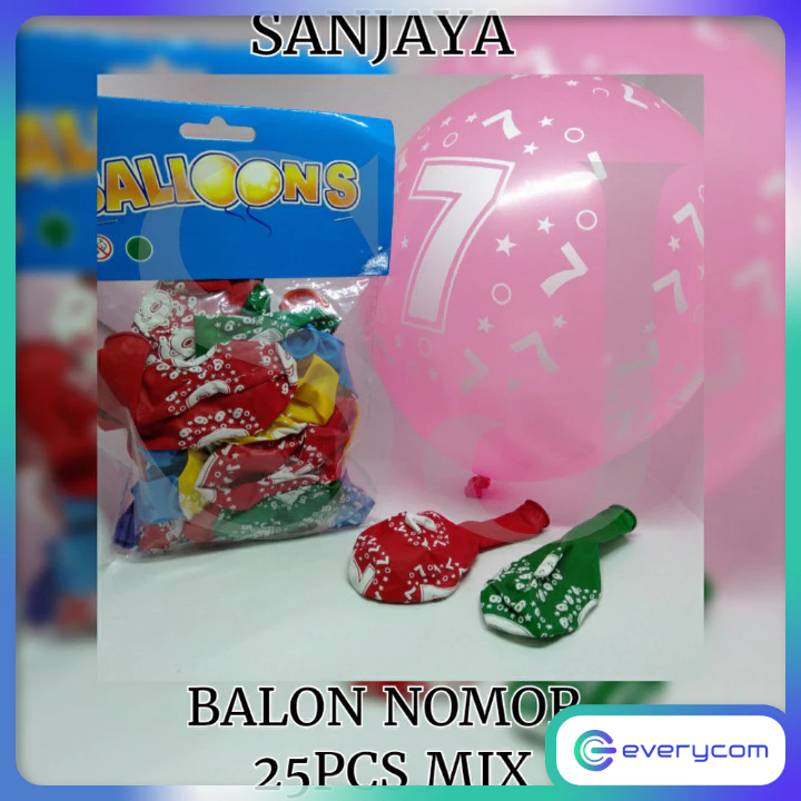 [20 Pcs] Balon Latex Tulisan Angka 12 Inch / Balon Motif Angka / Balon Ulang Tahun / Balon Nomor 20Pcs Mix