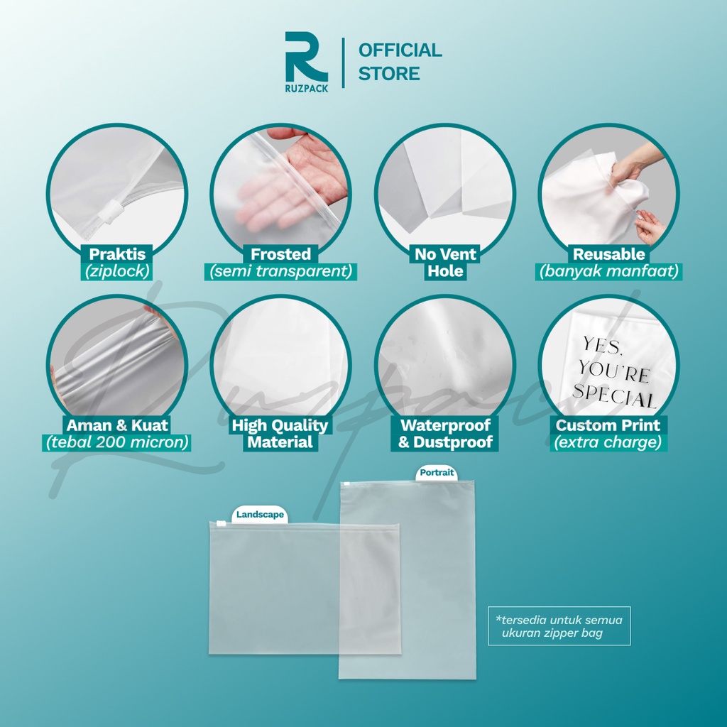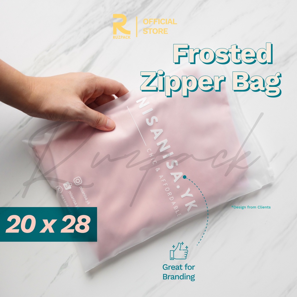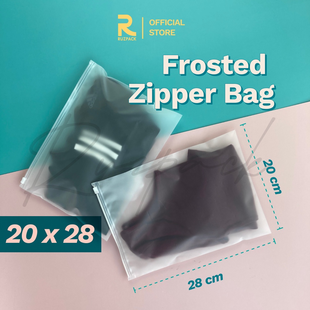 [20 x 28CM] Zipper Bag Frosted Pouch Mika Kantong Plastik Baju Travel Matte Polos Portable Zip Lock