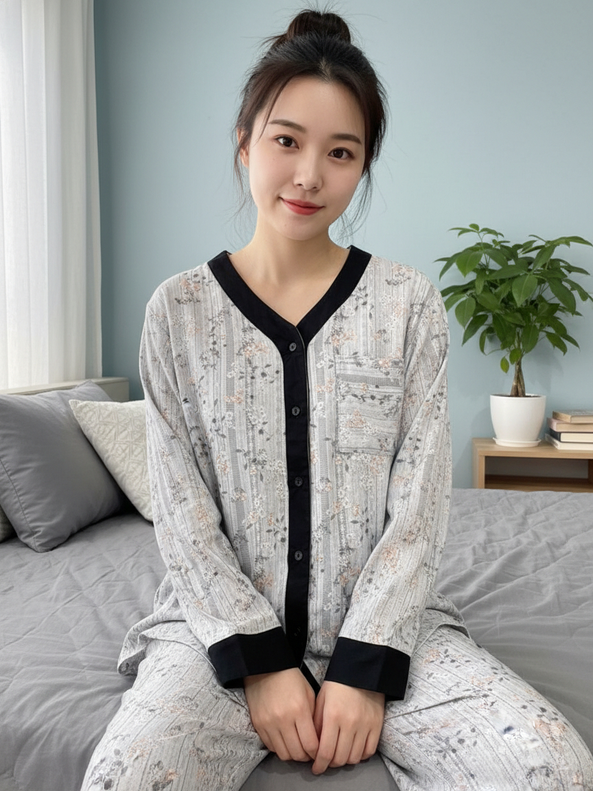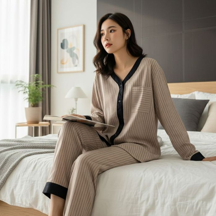 [2210002] Cammomile AF piyama list hitam