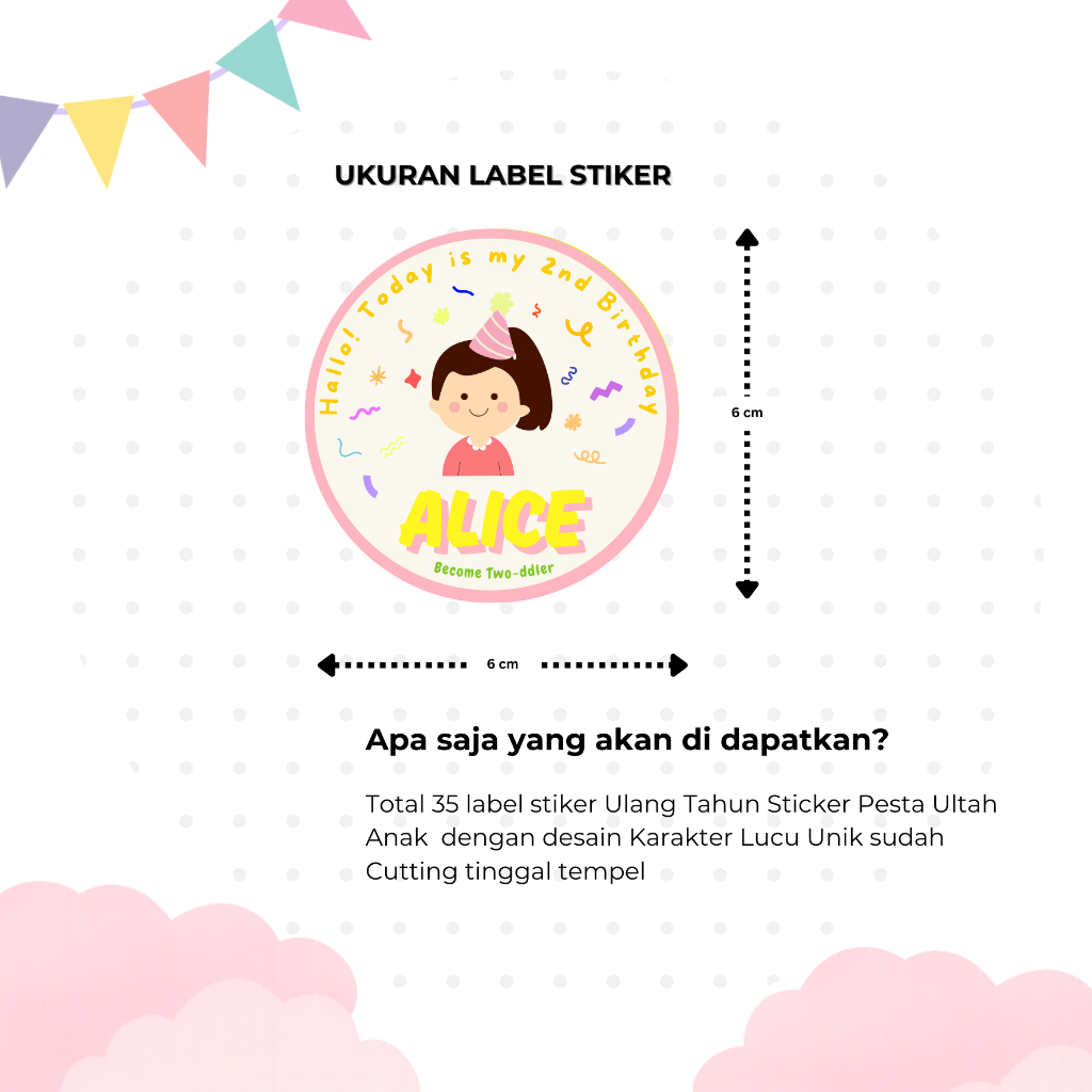 [35 pcs] Stiker Label Ulang Tahun Pesta Ultah Anak Cewek untuk Hampers, Goodybag atau Ricebowl