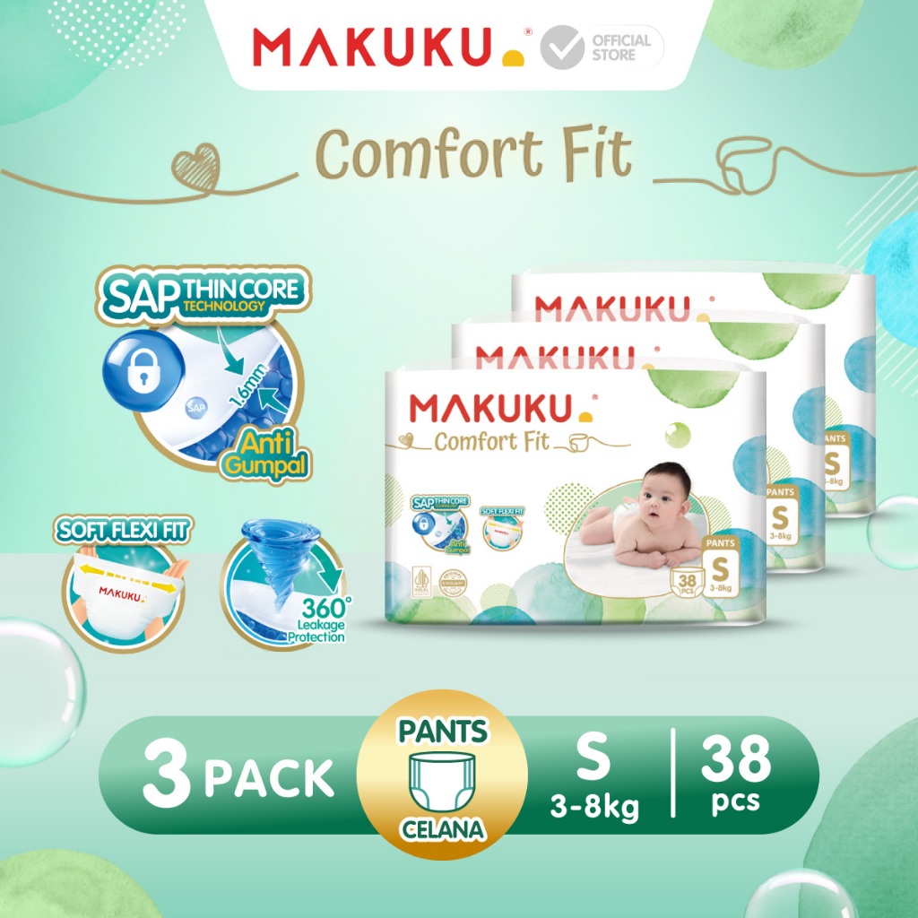 [3 PACK] MAKUKU SAP Diapers Comfort Fit All Size NB/S/M/L/XL/XXL Popok Bayi Tipis Extra Dry Anti Gumpal Mengunci Cairan Cepat Kering Type Celana/Perekat