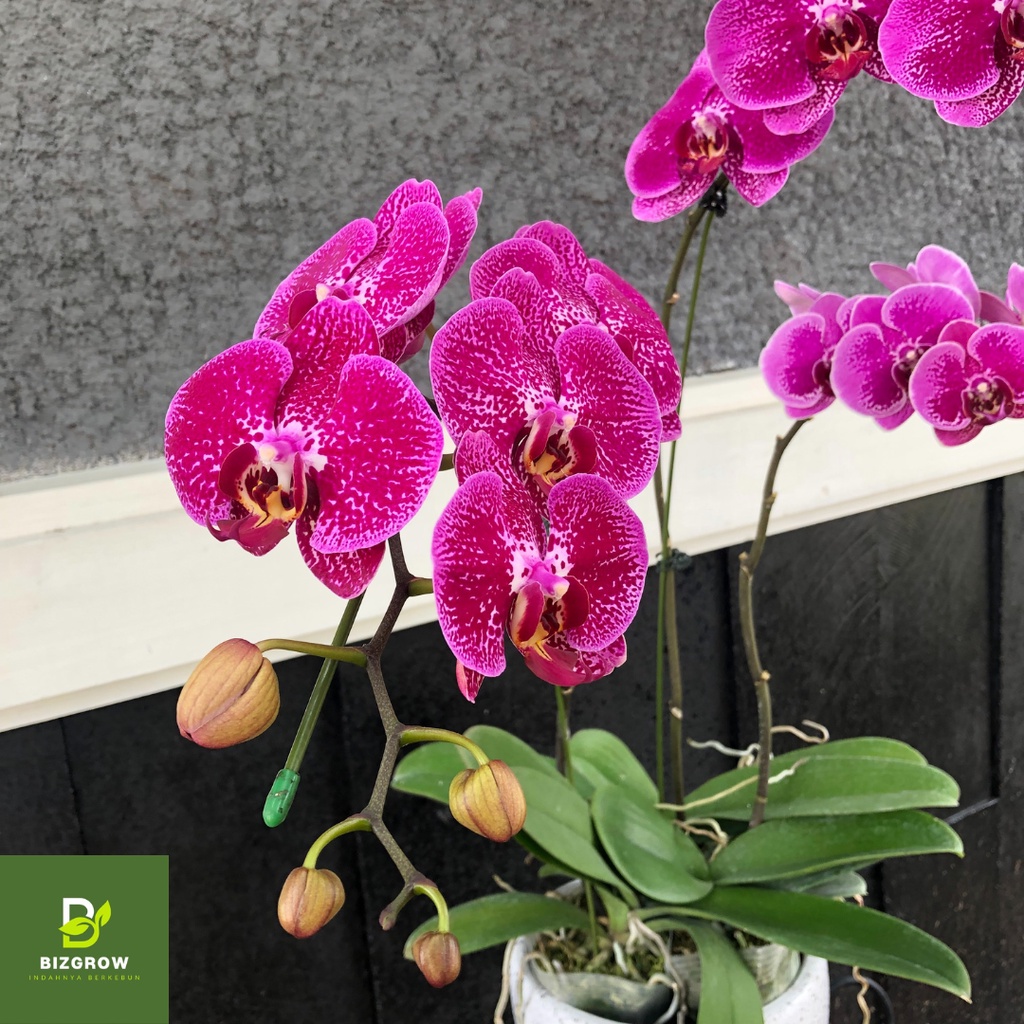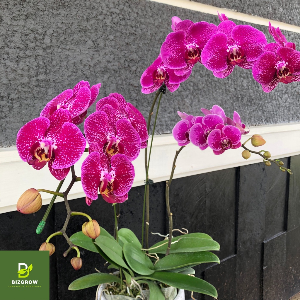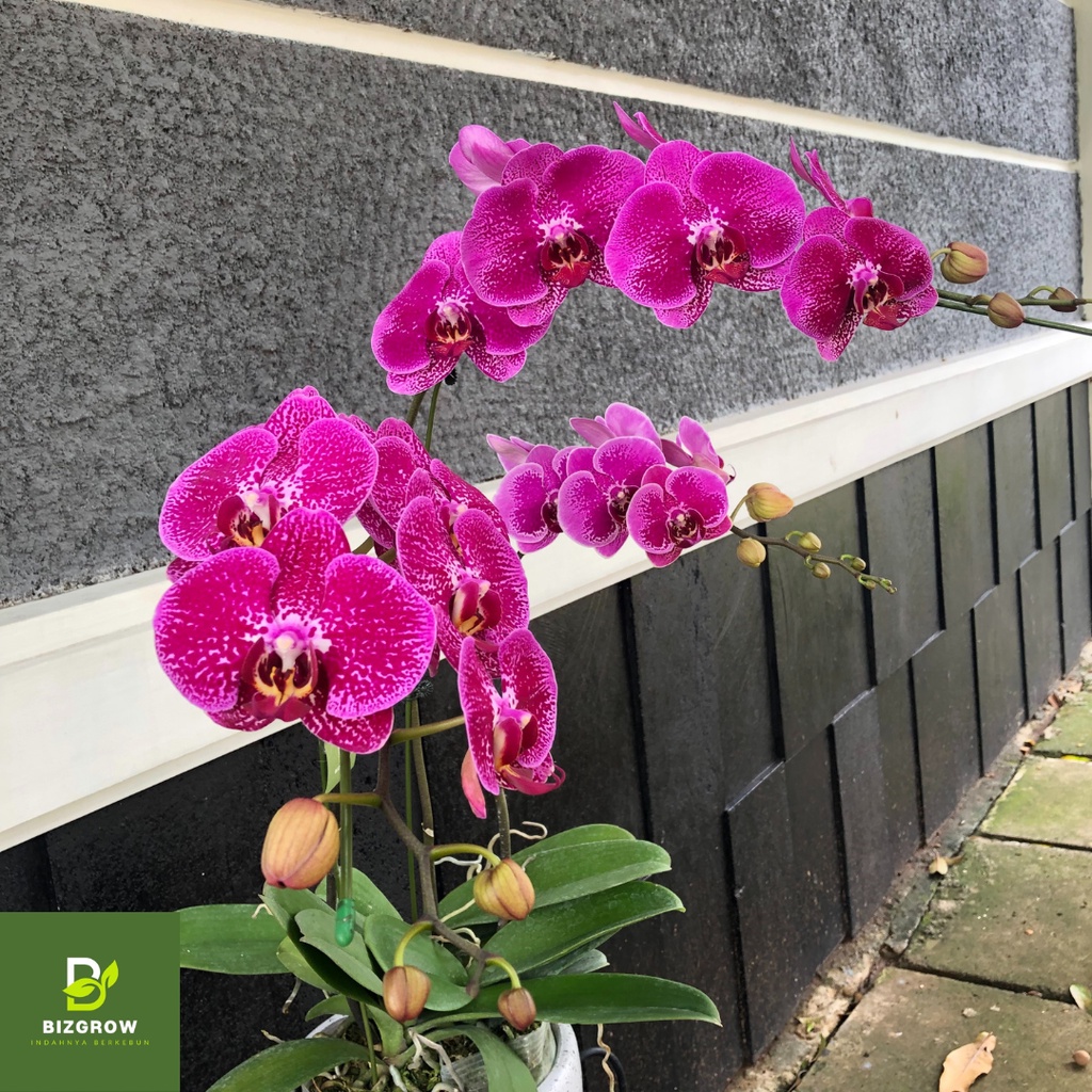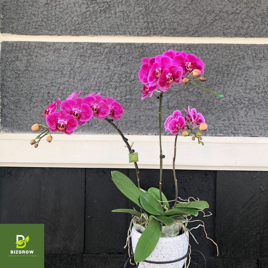 [3 Plan] Tanaman Hias Anggrek Phalaenopsis Bulan Ungu, Anggrek Hidup Dewasa Bercorak Novelty, 3 Rangkaian per Pot / Vas, Fresh Orchid Putih Flower Bouquet,