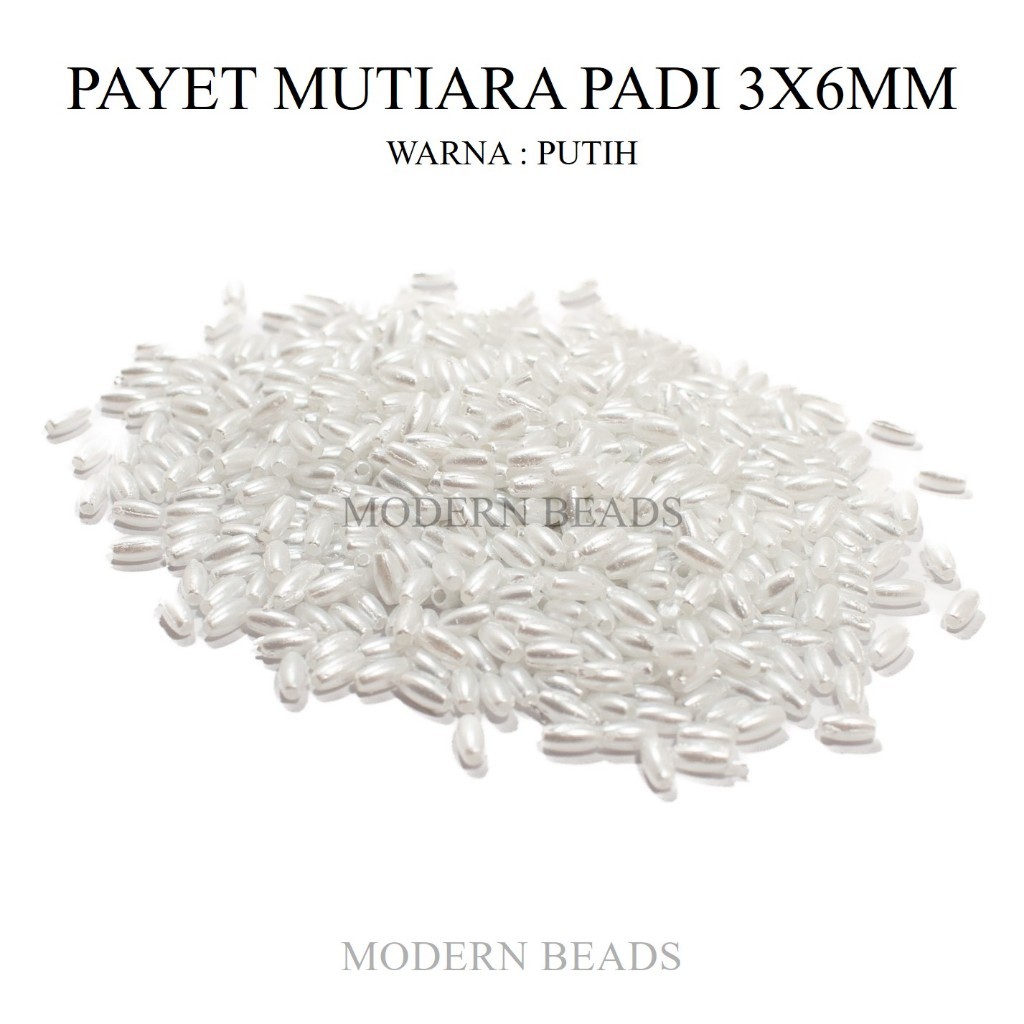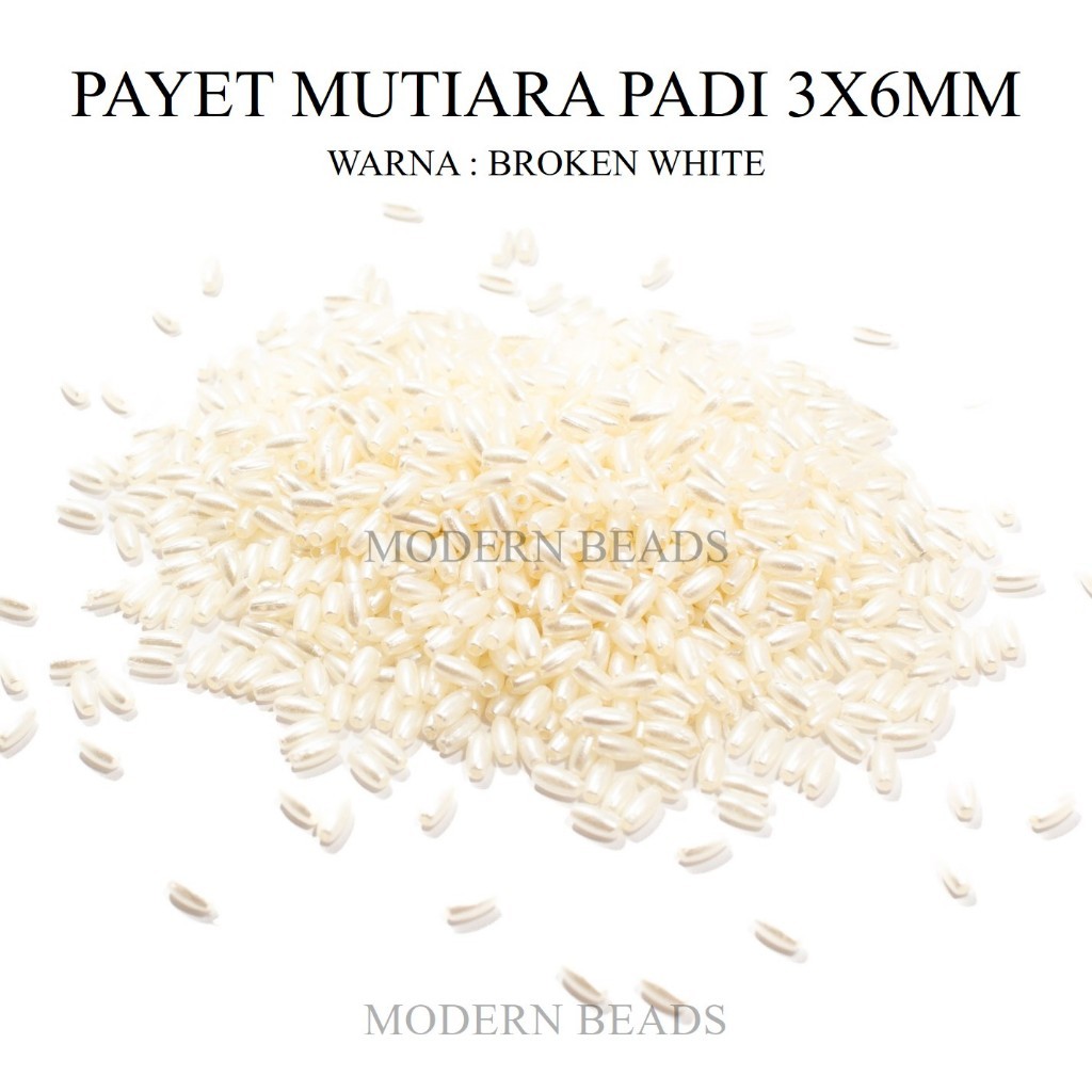 [5 GRAM] Payet Mutiara Padi 3x6mm / Manik Padi / Mote Beras / Manik Pearl Padi Grade A Warna Putih dan Broken White
