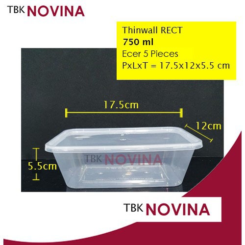 [5 Pieces] Thinwall KOTAK food container box tempat makan plastik kotak nasi sayur lauk buah wadah