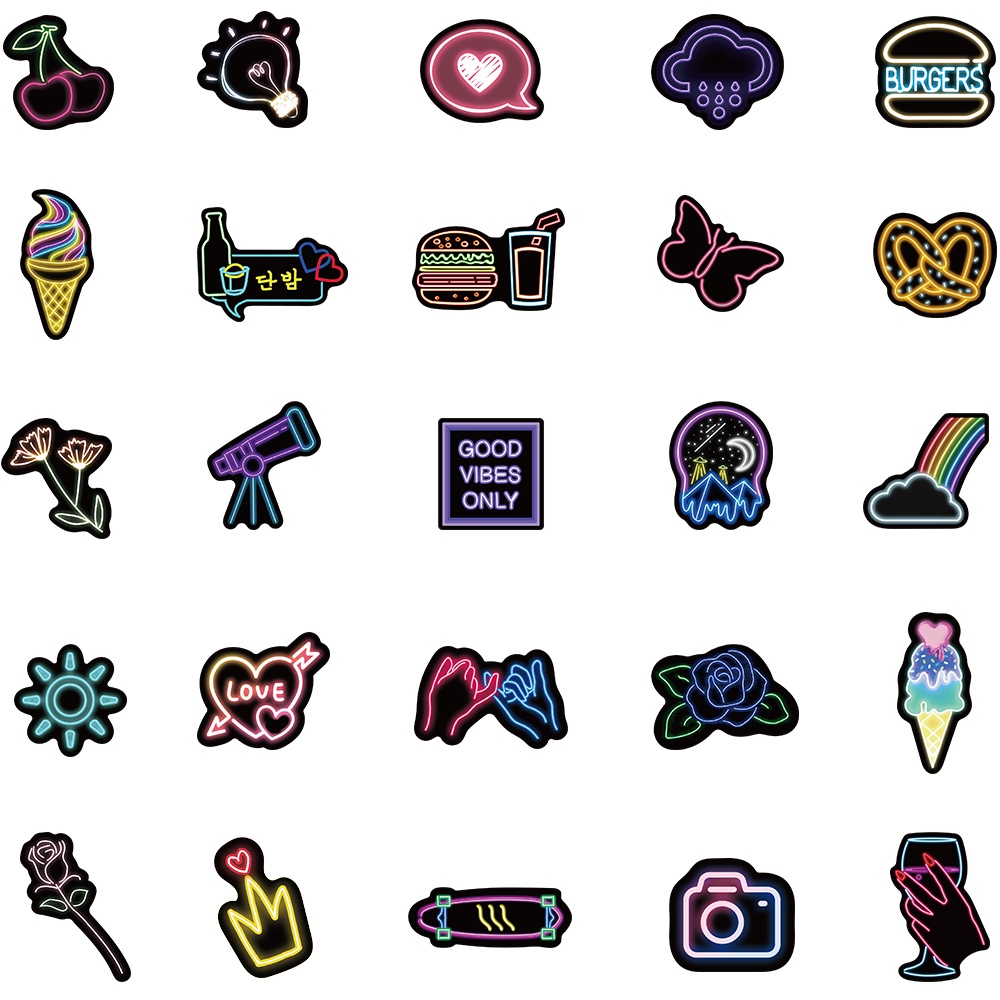 [50PCS]Stiker Neon Light Keren Stiker Lucu Graffiti Decal Vinyl Anti Air- Sticker Aesthetic Buku Journal Koper Casing HP Laptop Helm Motor