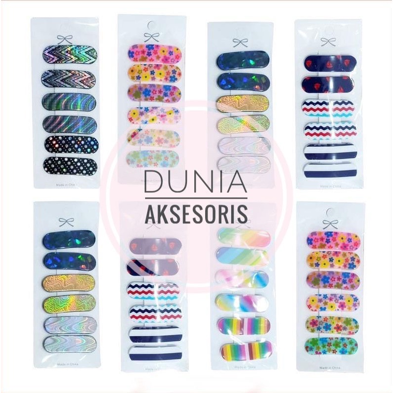 [ 6 PCS ] JEPIT TIPTOP KOTAK MOTIF WARNA / JEPITAN RAMBUT WANITA ANAK