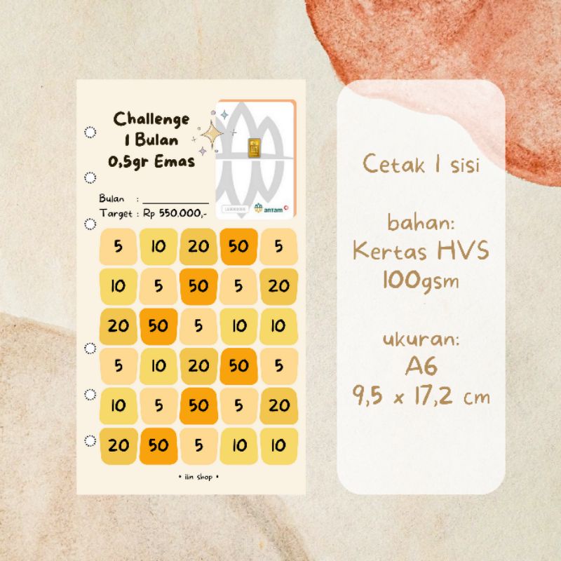 [A6] Isi Kertas Binder Tabungan 'Challenge Nabung Emas' Aesthetic | Loose Leaf Template A6 (6 Ring)