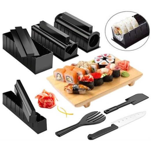 [ACC] Sushi Maker Set 10 in 1 Alat Gulung Cetakan Pembuat Bento Makanan Jepang Kimbab Nasi Nori Lengkap