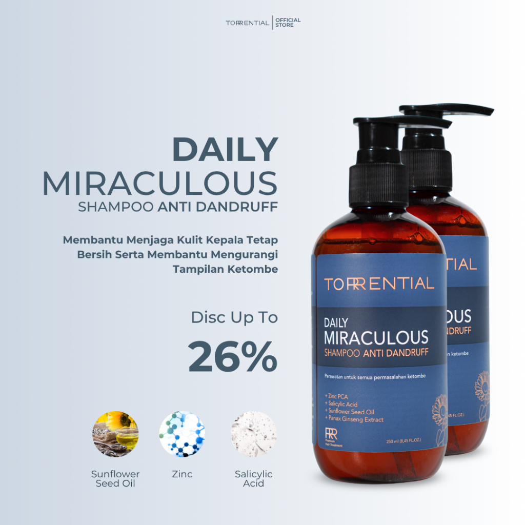 TORRENTIAL Bundle 2 PCS Daily Miraculous Shampoo 250mL - Membantu Menjaga Kulit Kepala Tetap Bersih Serta Membantu Mengurangi Tampilan Ketombe