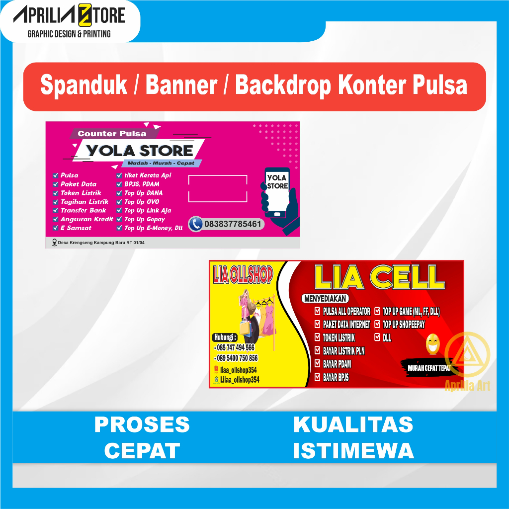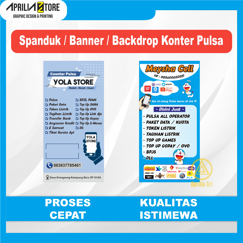 [Aprilia Art ] New Desain Spanduk Banner Konter / Celluler Berbagai Ukuran