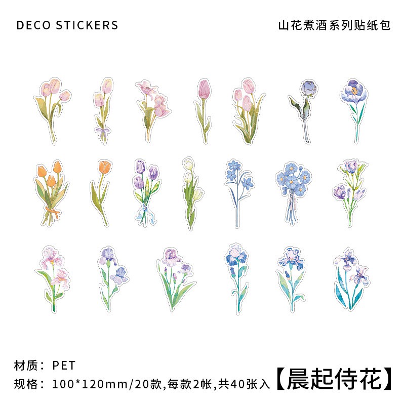 [Artopia] 40pcs Sticker Flower PET Papermore / Stiker Anti Tahan Air Estetik Aesthetic Tulip Anggrek Orchid Deco Dekorasi Scrapbook Bujo Journaling