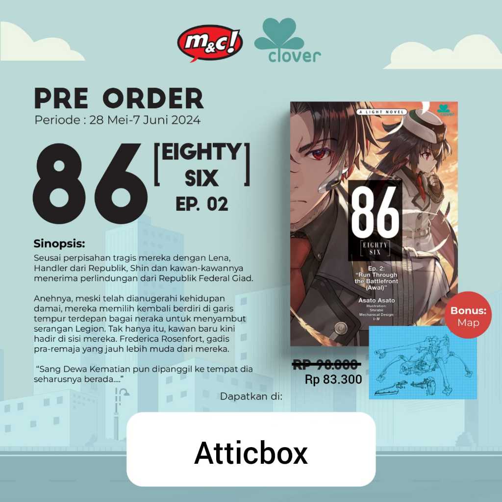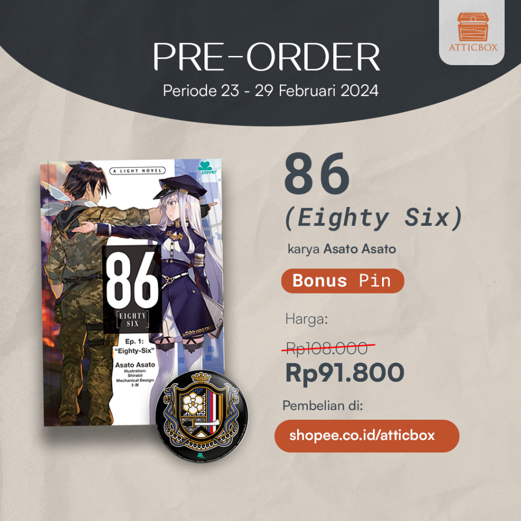 [Attic] Light Novel Eighty-Six (Episode 1 & 2) - Asato Asato (Dengan bonus)