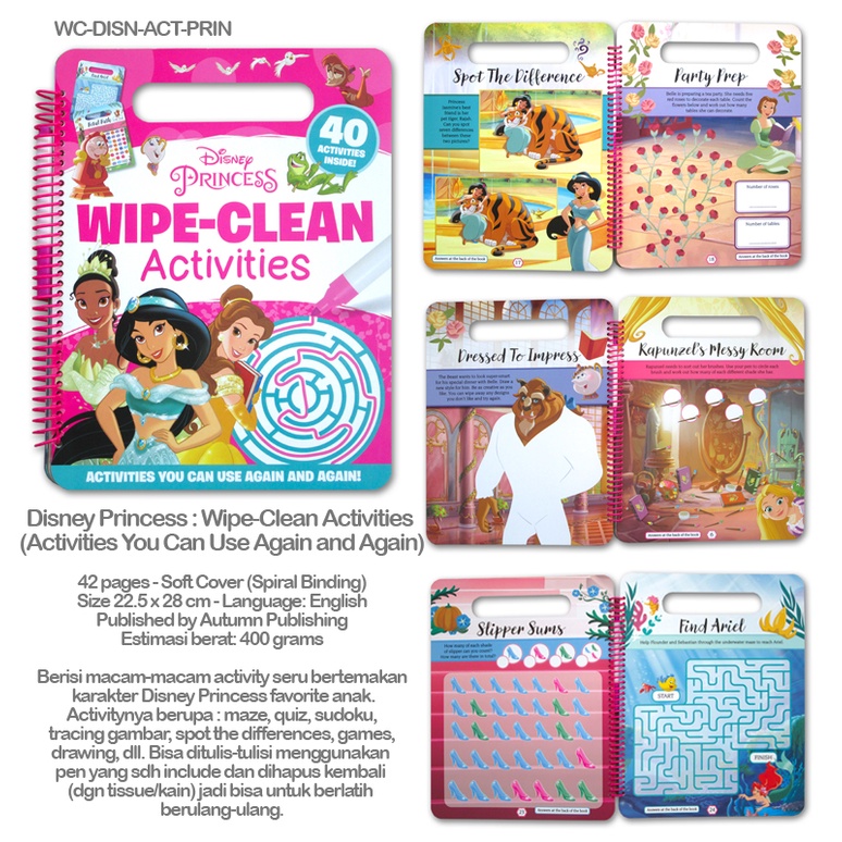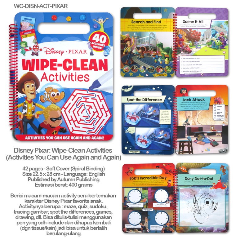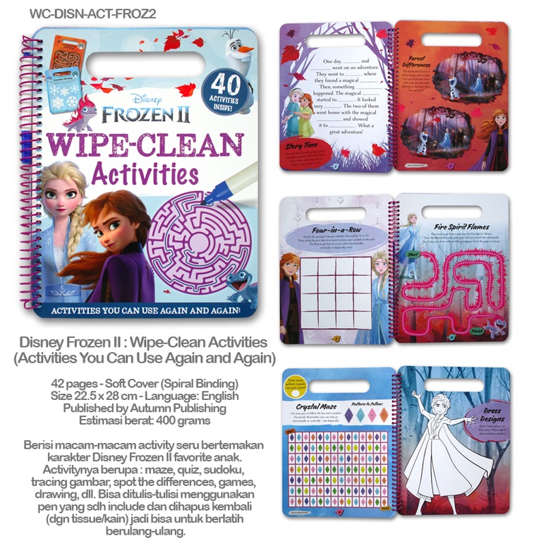 [Autumn] Disney Wipe-Clean Activity Books (bisa tulis-hapus) - Princess / Frozen / Pixar / Spiderman