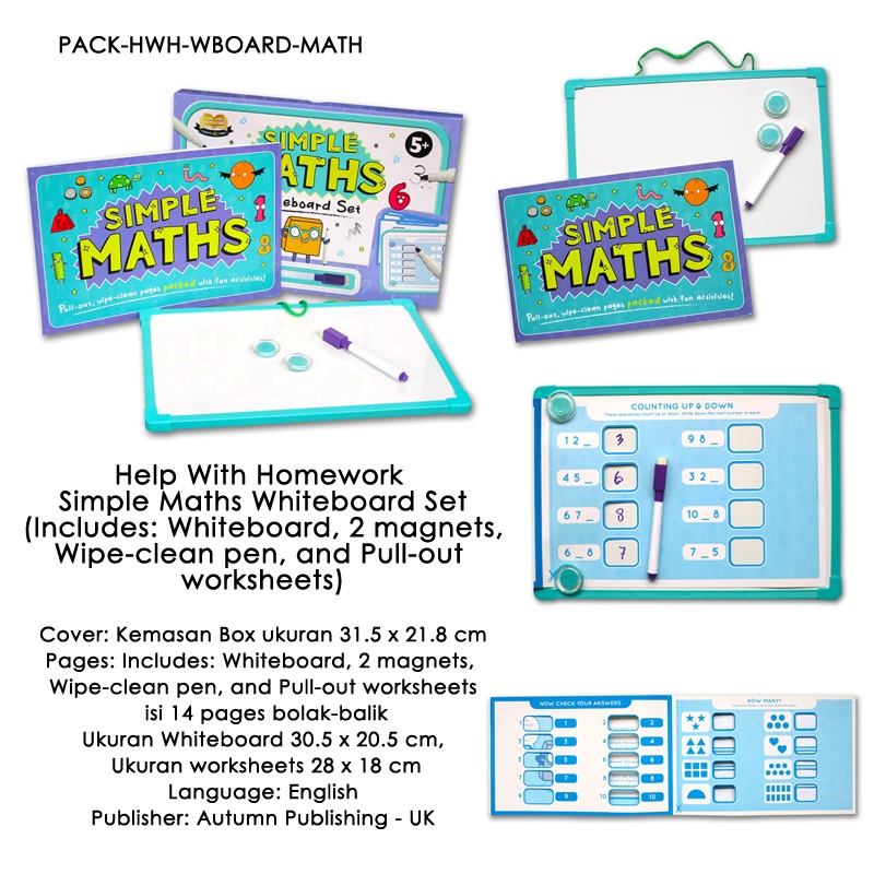 [Autumn] Help With Homework Letters and Numbers / Simple Maths Whiteboard Set (Includes: Whiteboard, 2 magnets, Wipe-clean pen, and Pull-out worksheets)