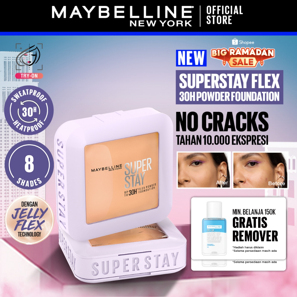 [BARU!] MAYBELLINE OFFICIAL Superstay Flex Powder 30H Longwear Powder Foundation Two-Way Cake Oil Control Transferproof Waterproof Full Coverage Setting Matte Makeup