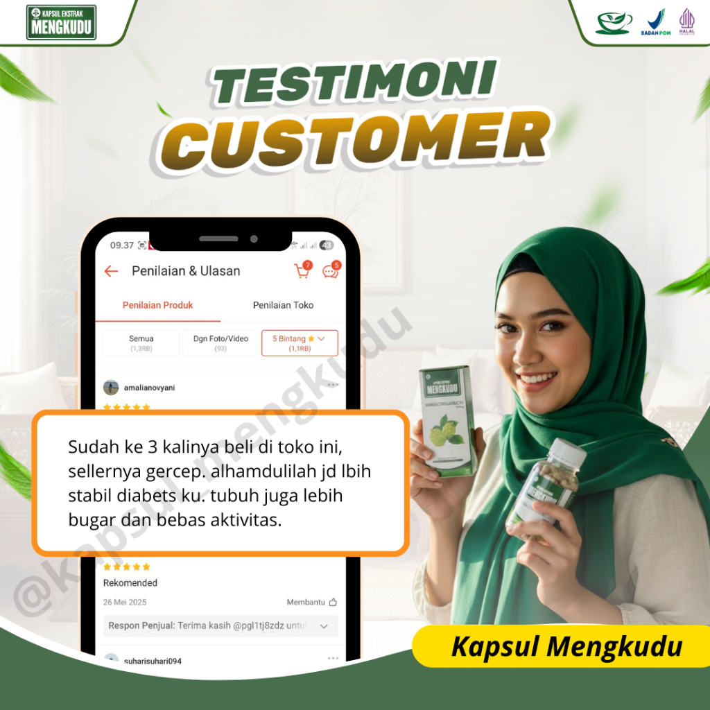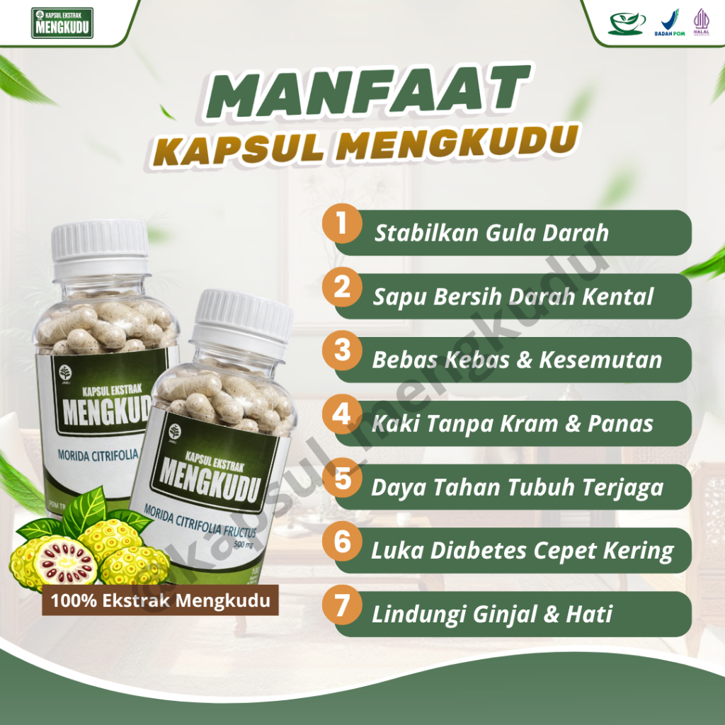 Kapsul Ekstrak MENGKUDU - [ BELI 2 DAPAT 3 ] - Kemasan Baru/ Pace/ Noni Original (Isi : 100) Mengatasi Diabetes