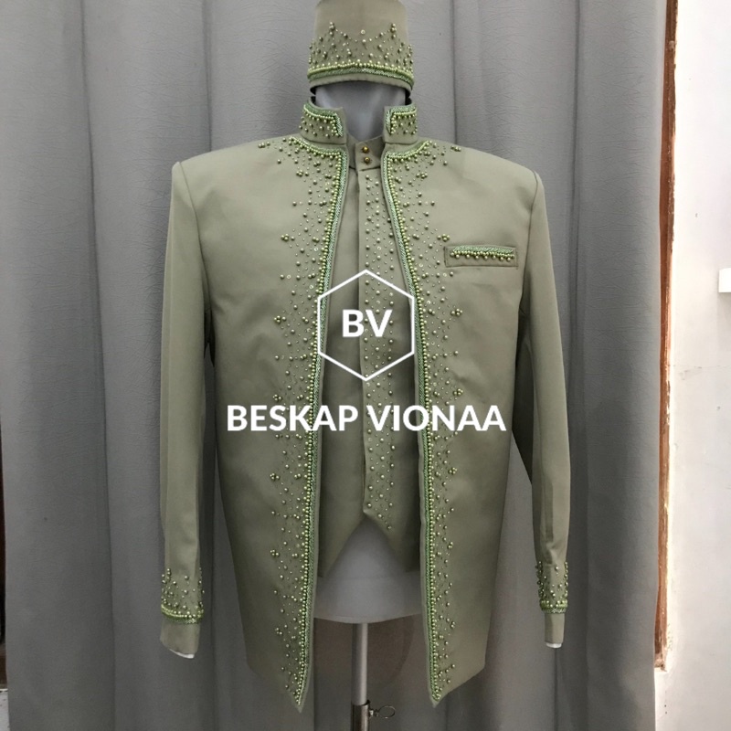 [BESKAP VIONA] Beskap Pengantin Jawa Bahan Matte Halus Tebal Hijau Sage Green