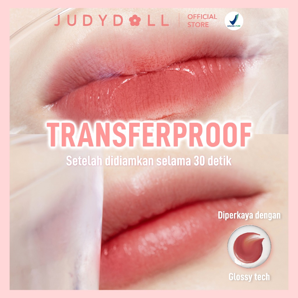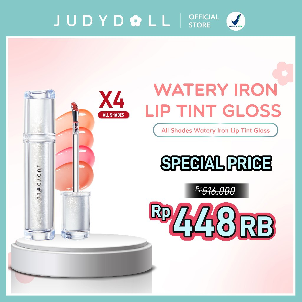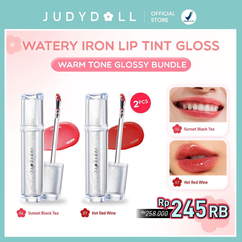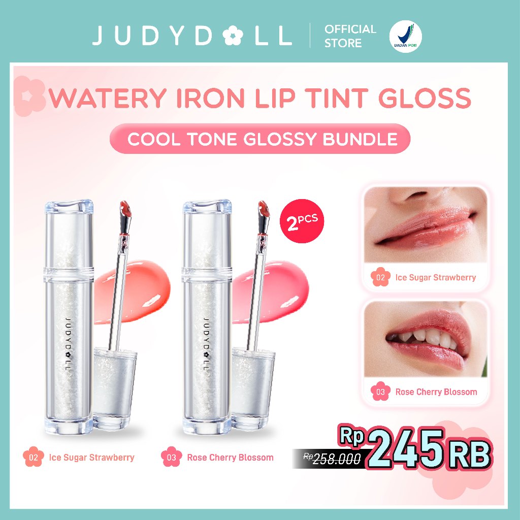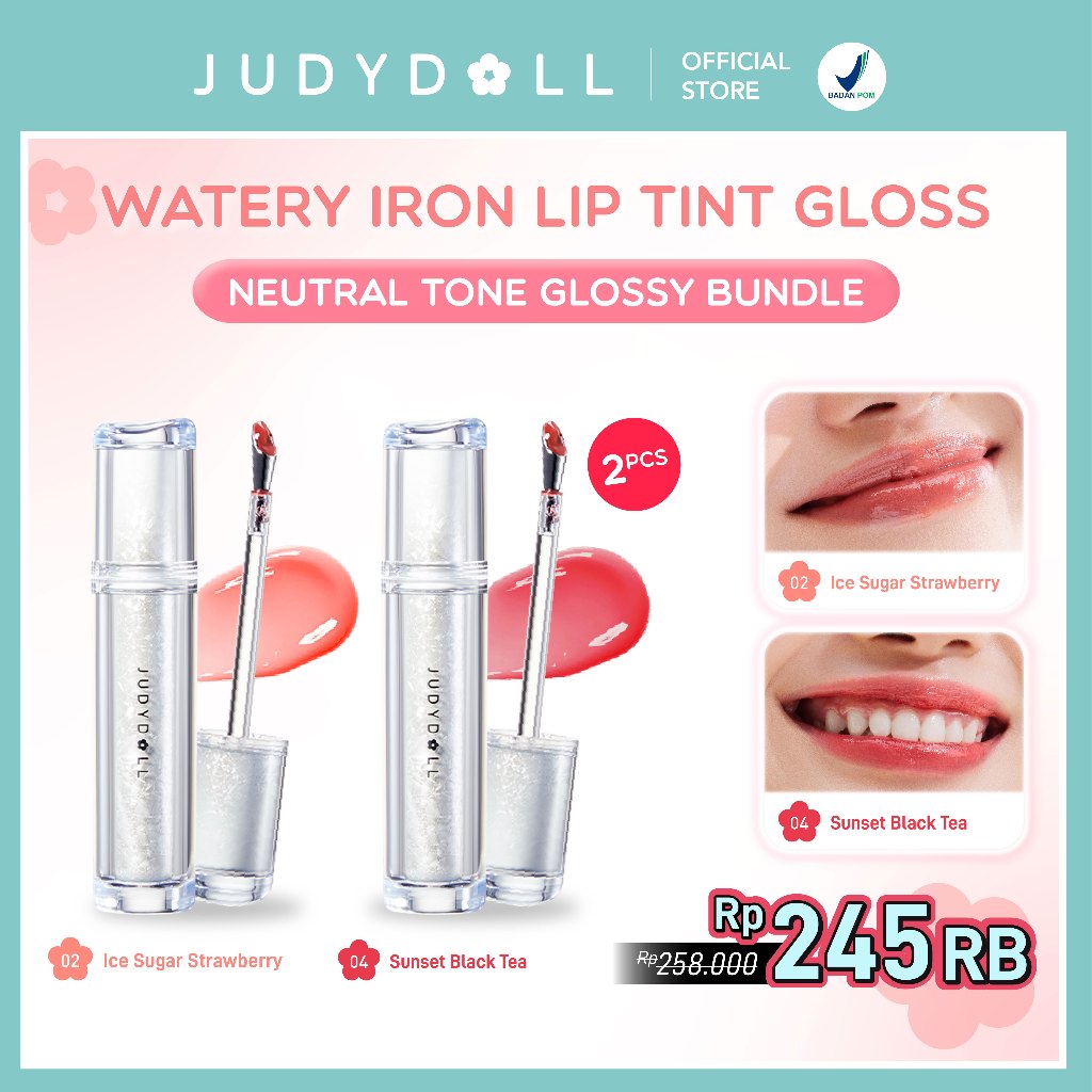 (BUY 1 GET 1) Judydoll Watery Iron Liptint Gloss - 2,4 gr (Next Level Liptin Lip Gloss, Tahan Lama 12 Jam, Transferproof & Hasil Glossy Dengan Lip Massager)