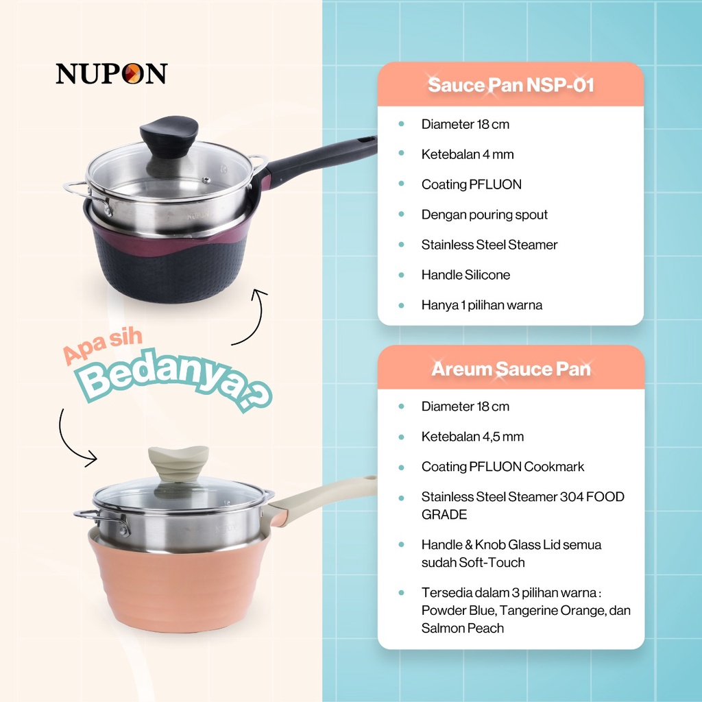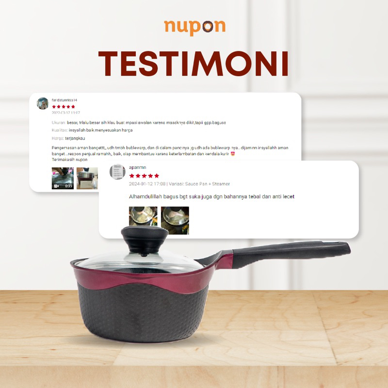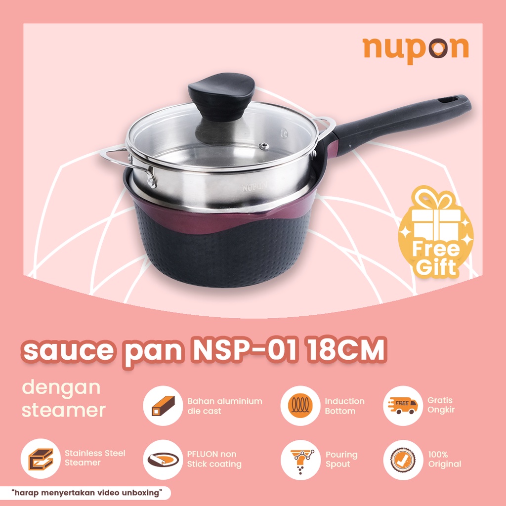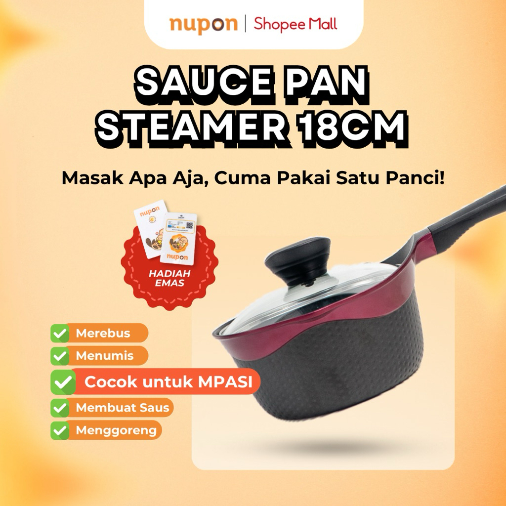 NUPON - Panci Sauce Pan Steamer Kukusan Stainless 18 CM Anti Lengket - Alat Masak Perlengkapan Dapur