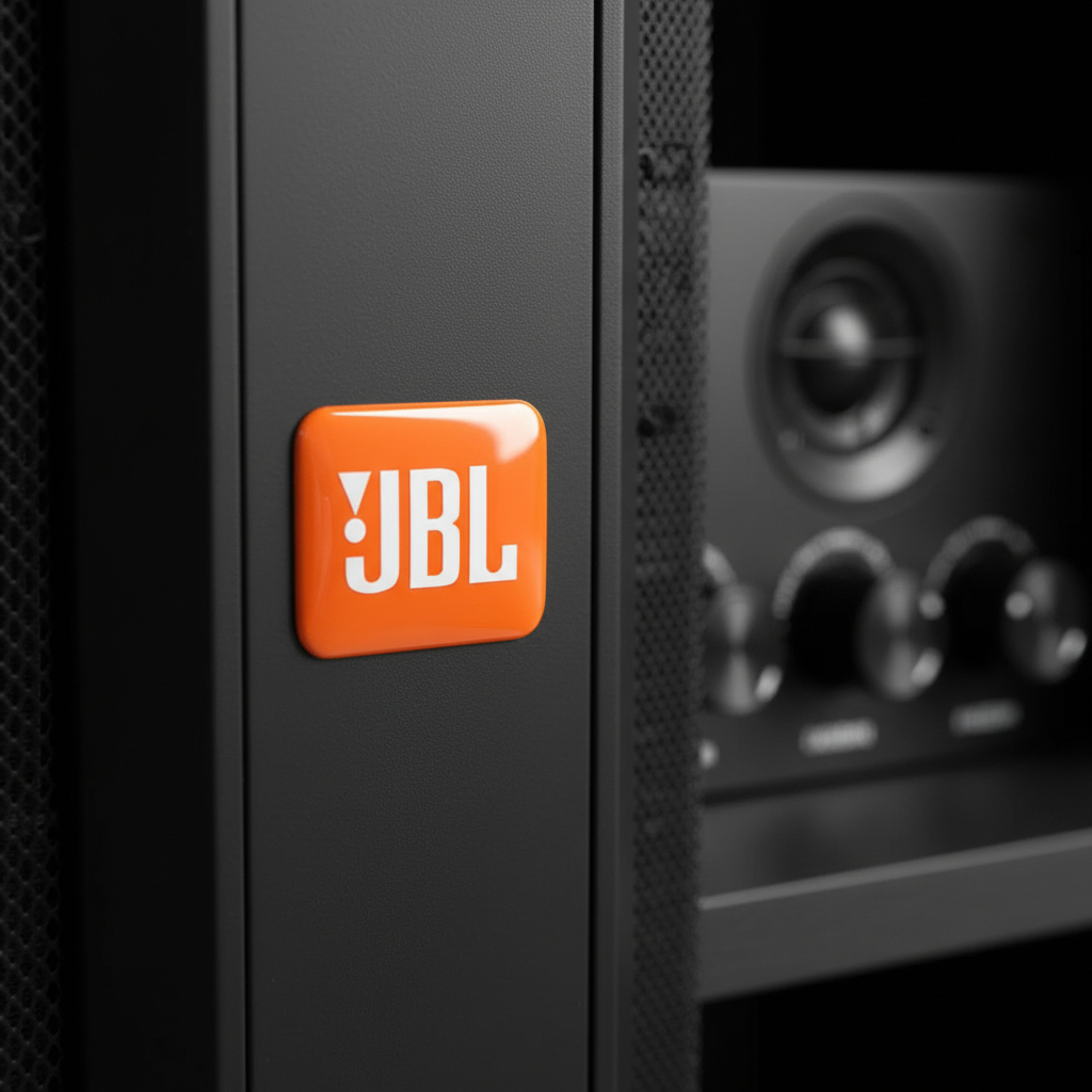 [BISA COD] EMBLEM STIKER SOUND JBL STIKER AUDIO STICKER LENTUR 3D BENTUK KOTAK UKURAN 33MM X 40MM