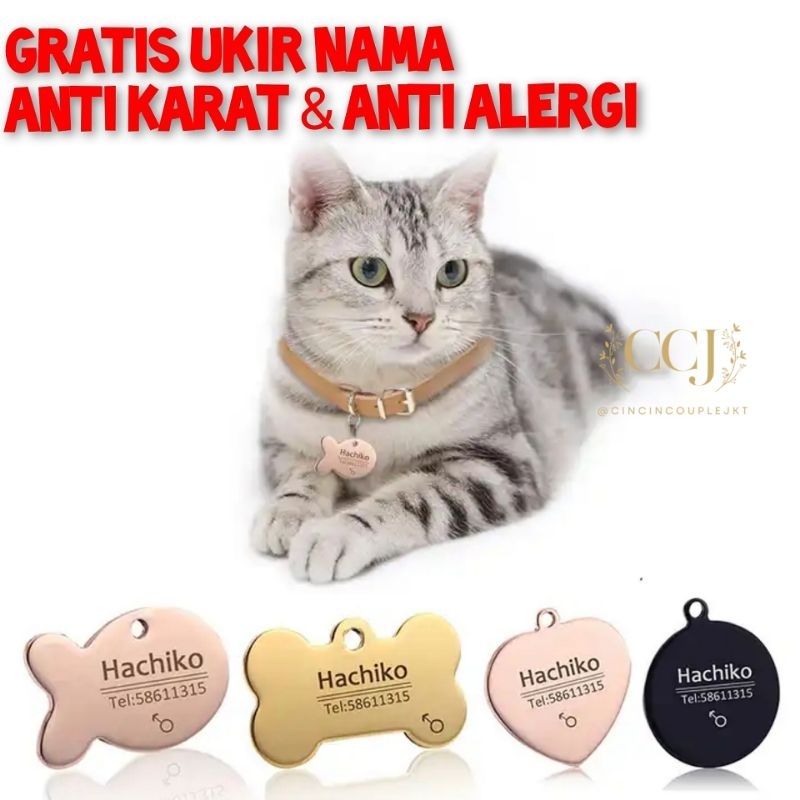 [BISA UKIR NAMA] KALUNG ANJING KUCING CUSTOM TITANIUM ANTI KARAT | DOG CAT TAG NAME TAG HEWAN PELIHARAAN