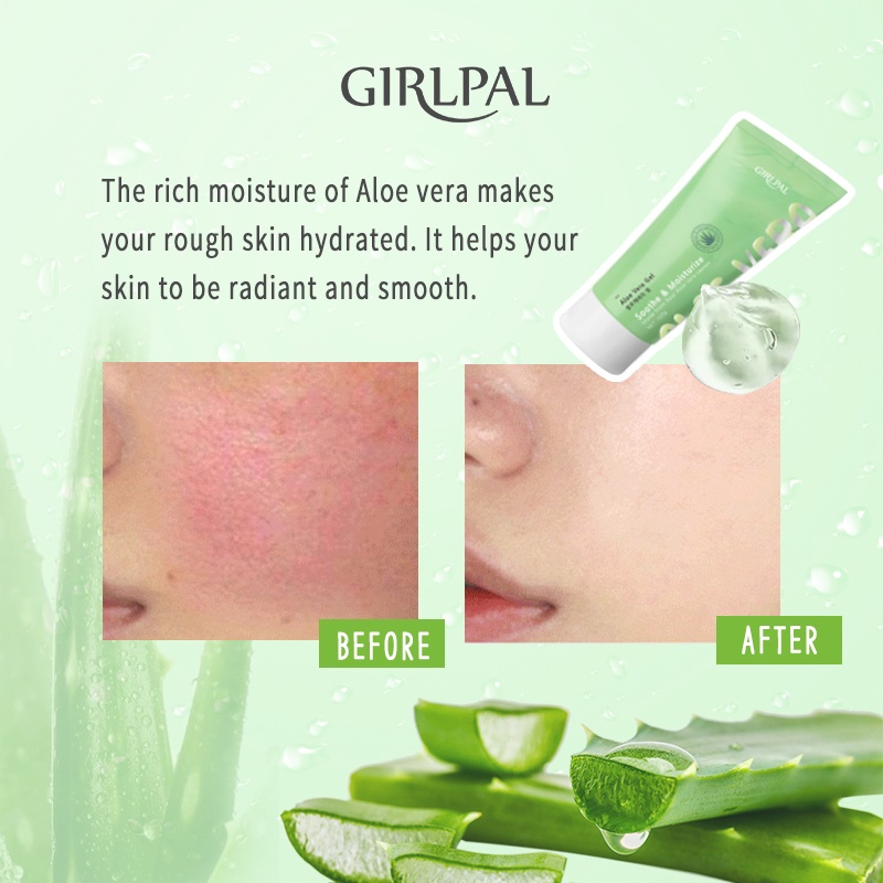 [BPOM] GIRLPAL Aloe Vera Gel 100g Natural Alcohol-free Soothing & Moisture ( Wajah & Body )