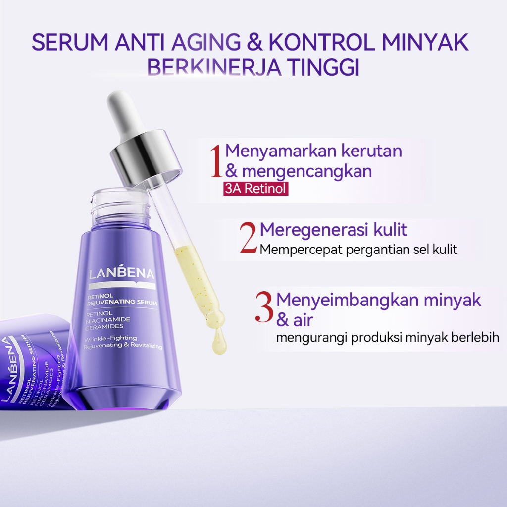 LANBENA Morning C Night 3A SeruMata Kulit (Serum Retinol+ Vitamin C Murni) - Cepat Mencerahkan Kulit Hanya Dalam 7 Hari (15ml/30ml)
