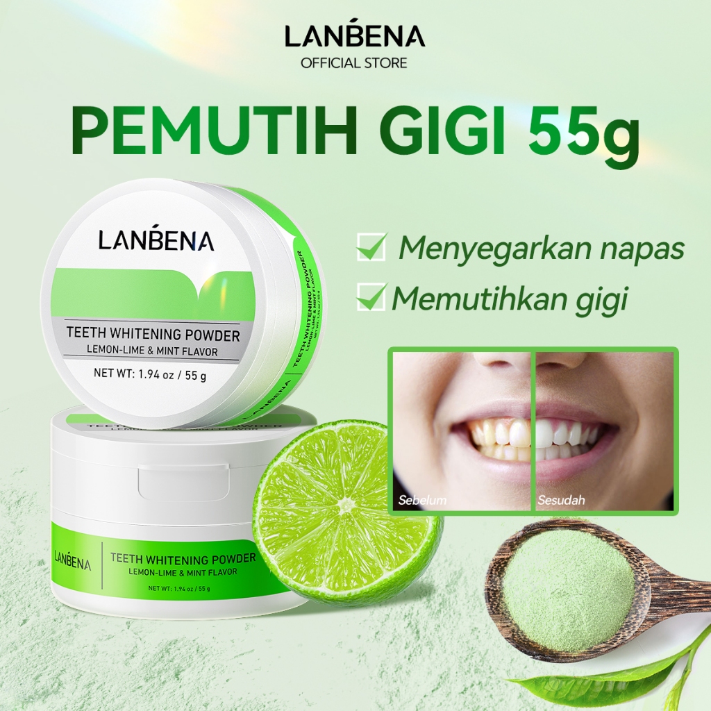 LANBENA Lemon Teeth Whitening Powder 55g - Pemutih Gigi Mencerahkan Pasta Gigi Odol