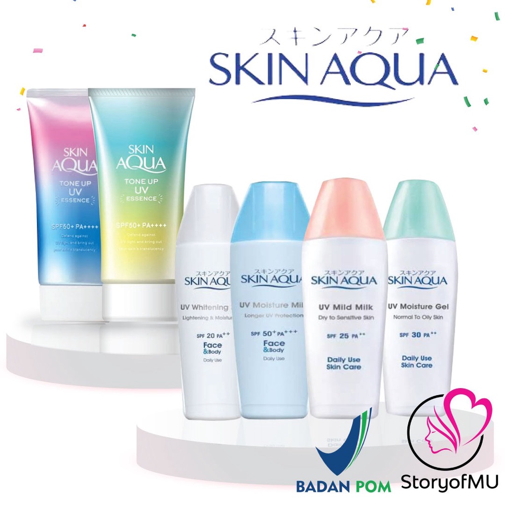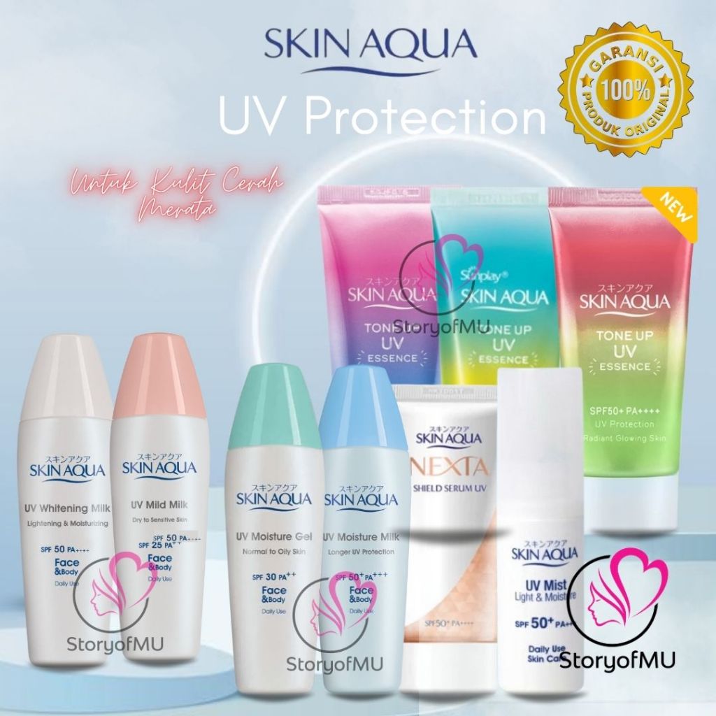 [BPOM] SKIN AQUA UV Sunscreen Series 40gr (Moisture Mild Whitening Milk / Gel / Tone UP UV Essence Mint Green) UV Mist Light & Moisture SPF50+ PA++++ / Nexta Shield Serum UV SPF50+ PA++++ 40gr