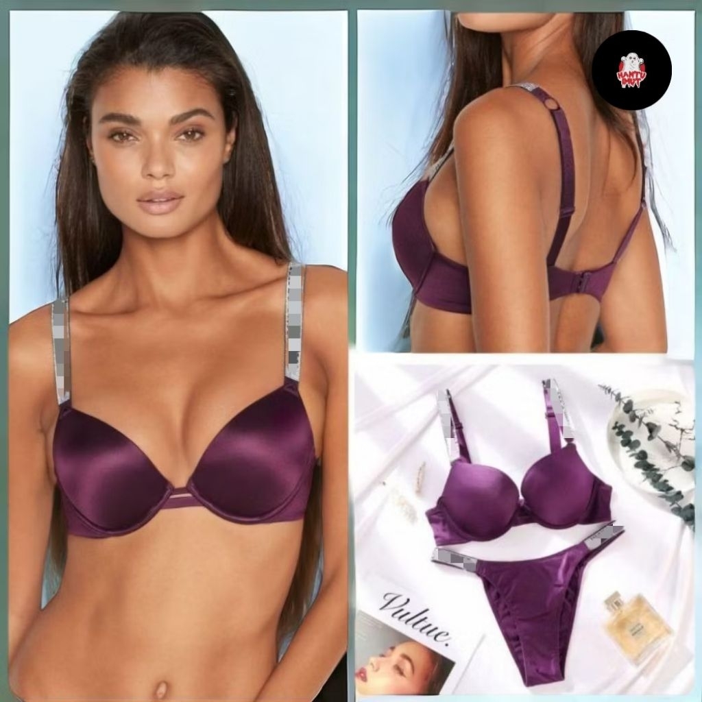 [BRA SET - CUT LABEL] Pi Es 8030 Very Sexy Rhinestone Shine Strap Push Up Bra Set | Braa Wanita | Braa Push Up | Braa Premium | Set Braa Wanita