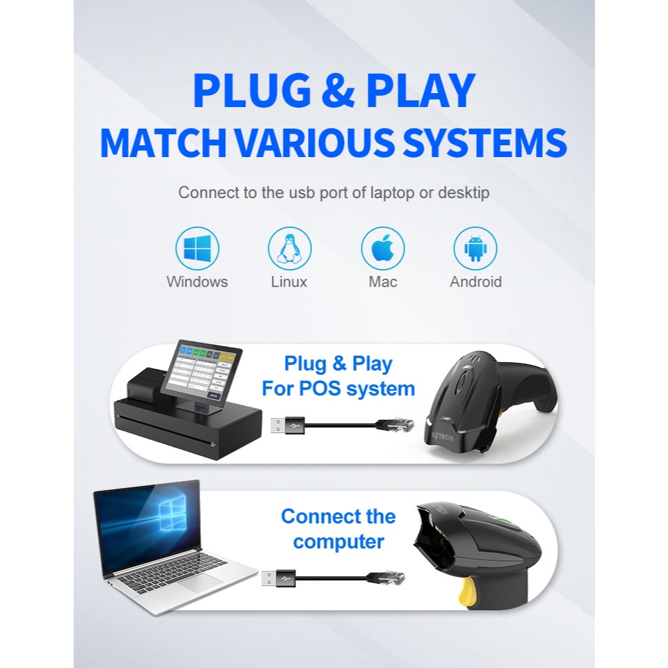 [ BUNDLE SET STAND ] Barcode Scanner Kabel 1D Cocok Untuk Scan Barcode Batangan Produk Resi Batangan