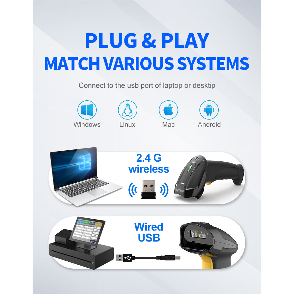 [ BUNDLE STAND ] Barcode Scanner 1D Wireless Cocok Untuk Scan Barcode Produk Resi